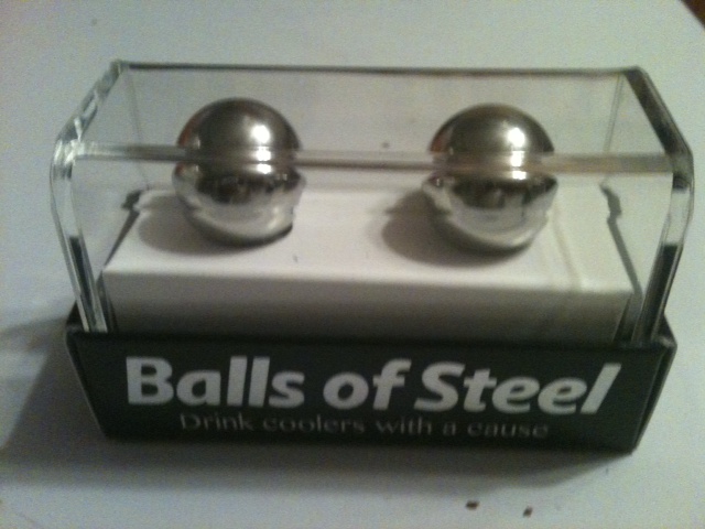 Balls of Steel, wasn’t that the so-so movie about professional dodge ball? Oh, it was that song from Accept in the late 80’s, yes? Not really, this time Balls of Steel is a hybrid of sorts between philanthropy, testicular cancer and a drink cooler.