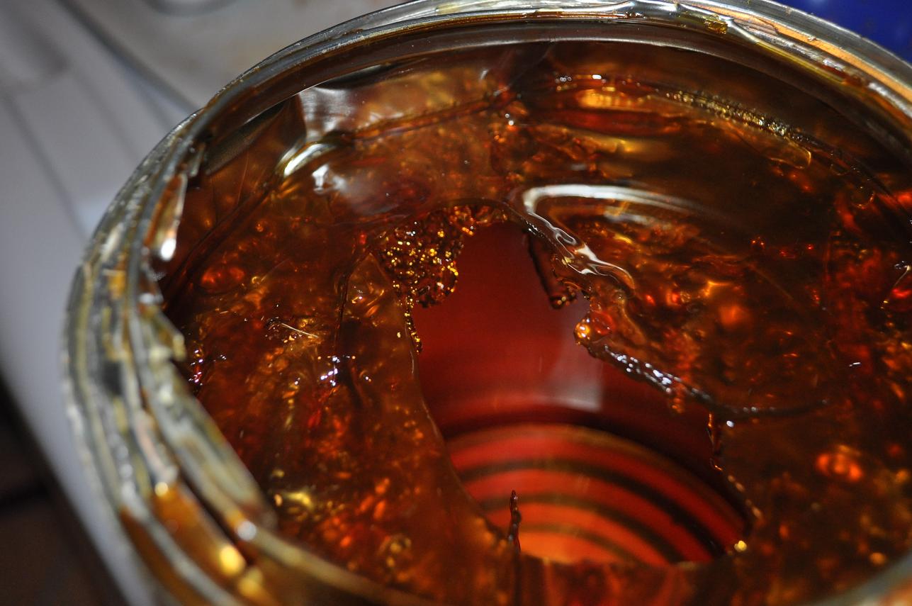 I jammed a screwdriver under the lid and had to do so all the way around the lid. It’s not that I had sealed it that tight; the liquid had somehow sealed the lid to the can. Once I pried the lid off I saw a solid sheet of ember. The bucket felt very solid, but just to be sure I pushed down on the top of the solid sheet of poly. Enough liquid came out from the edges that allowed me to do my very small project.