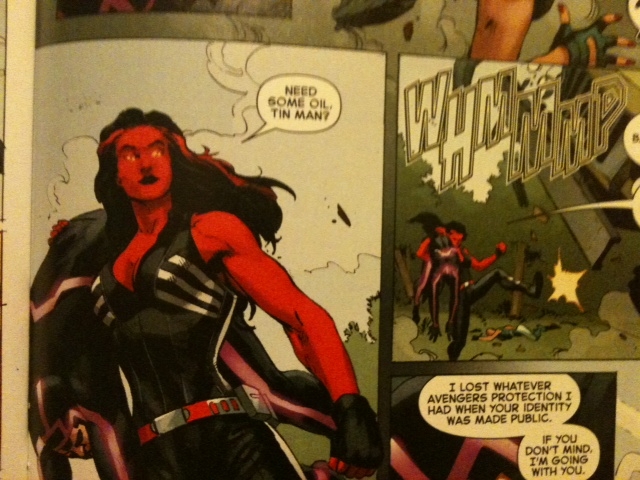 Red-She Hulk, in addition to, New Avengers, Thunderbolts and Dark Avengers are the titles I’m reading now.  Sadly, Superior Spider-Man dropped off that list this past week.  It’s a good title, but a $3.99 title  needs to be better than ‘good’ for me to fork that out for a comic that comes out twice a month.