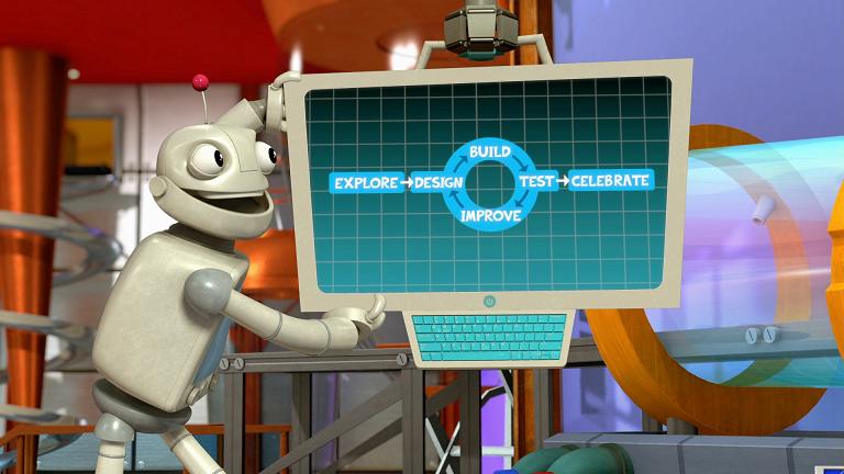 Explore, design, build, test, improve and celebrate is the cycle of creativity that Quiqley lead the team on. For a DVD that is geared at 4-7 year olds I loved that it taught a very simplified version of the Scientific Method. I scoffed when I saw that the DVD taught aspects of problem solving in it, but it did and in a way that our 4 year old full understood.