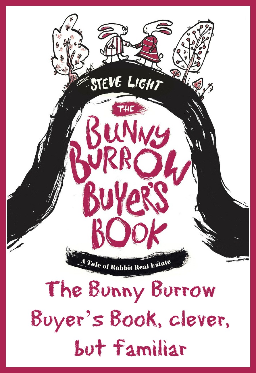 “oh, that cartoon that you like has a new book”, my wife said when she first saw The Bunny Burrow Buyer’s Book. ‘no, that’s not them, it just has a resemblance’, I clarified. “It sure does”, she uttered as she looked through the book. If you know Groening’s earlier work you’ll still enjoy the book, but will have Binky in the back of your head. If that’s all Greek to you then jump on into this wry look at how a growing bunny family finds its next burrow.
