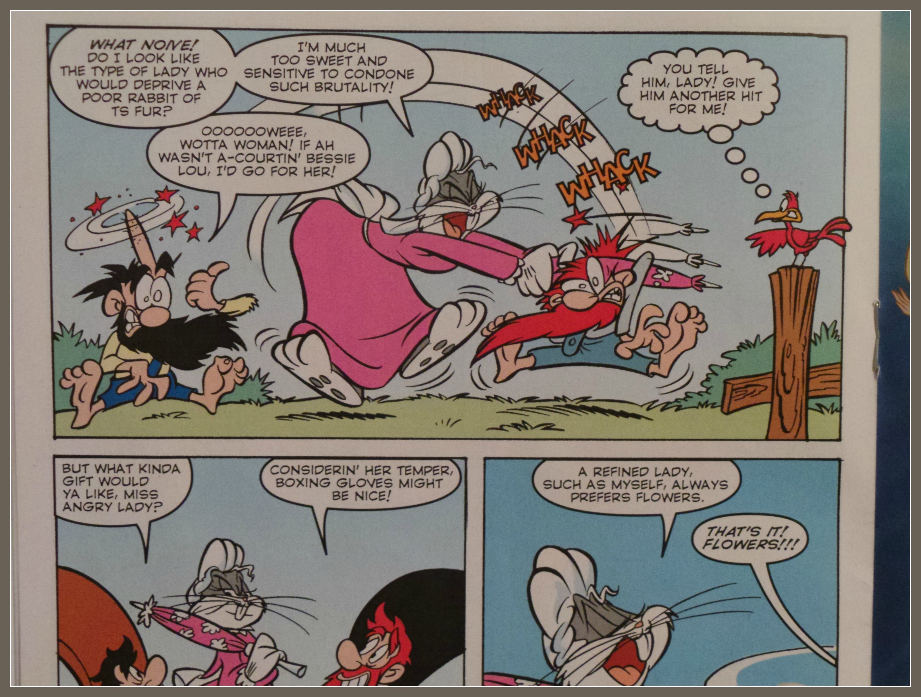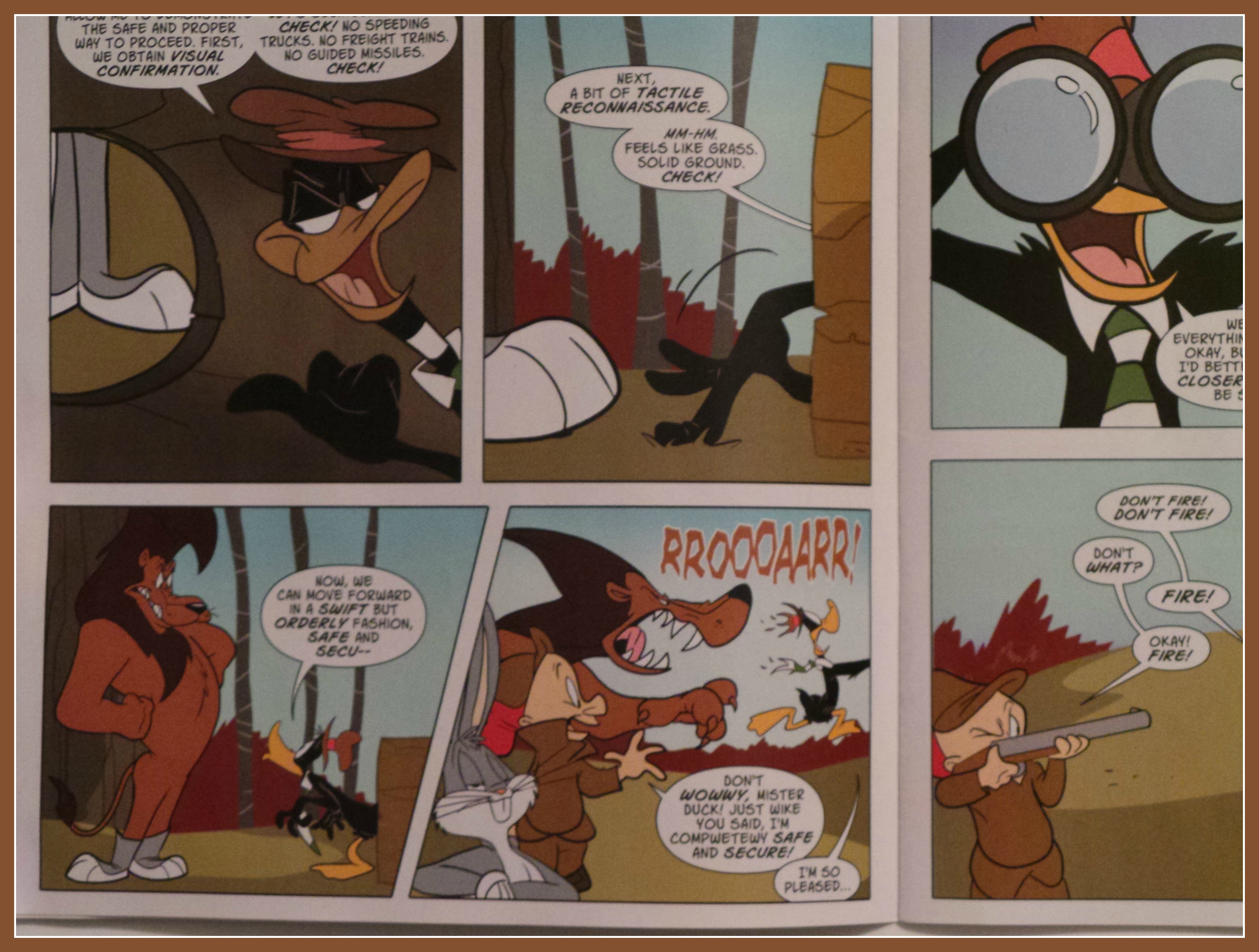 Part of that was based on what I now know about how Looney Tunes is produced. In a way it’s very similar to Mickey Mouse where the comic has some repackaged stories, some that originally were published overseas and a couple new ones with original art. What I didn’t factor in from our original review was that all of the stories were new to him. He didn’t care about the 1/16 what variance on the exterior of the pages; he just wanted to be entertained.