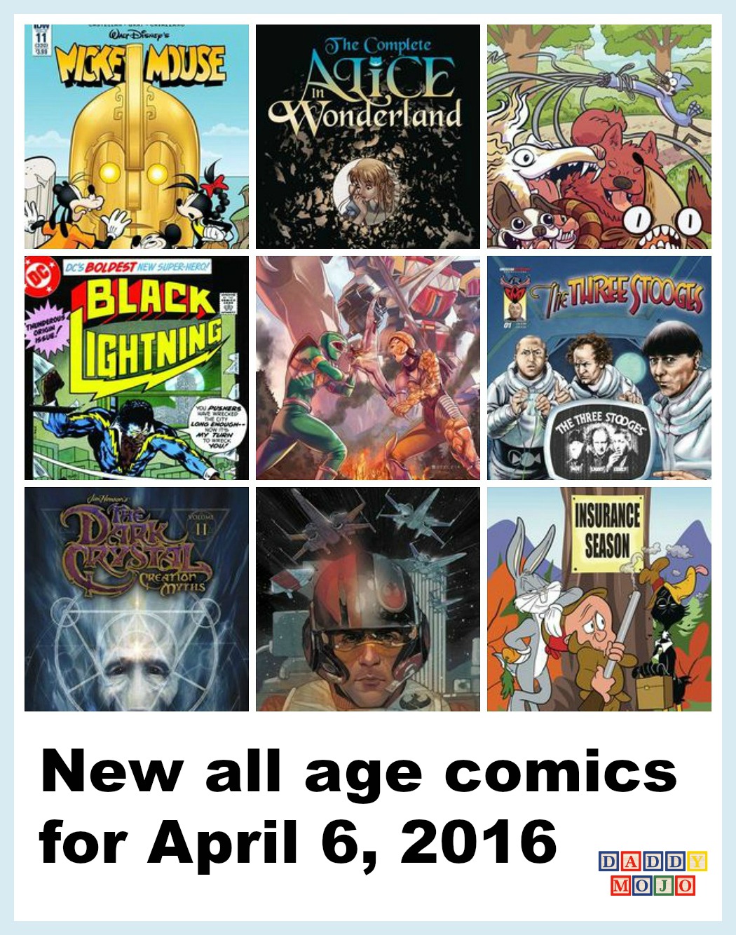 This week in new all age comics brings a return of a true classic, The Three Stooges. It’s slapstick, punch humor that may not translate to some families and their children, but hop back in the time machine and this was family entertainment back in the way day. Some of the other humor comics this week include Regular Show, Bob’s Burgers, Loony Tunes and Mickey Mouse to name a few.