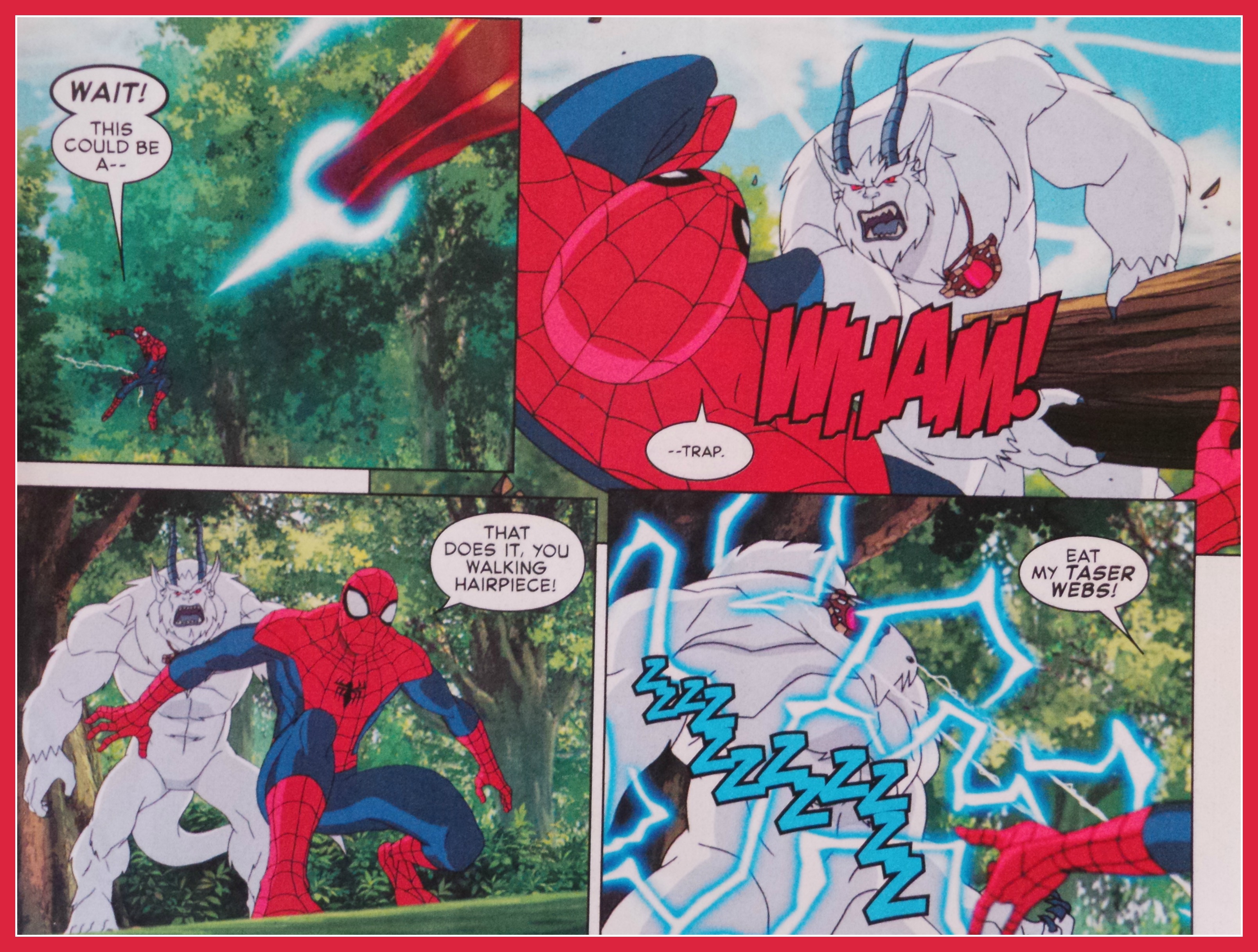 What, draw and write in your comic book? Sacrilege you say, but for the all age comics you throw those rules out the window. Bonus for Ultimate Spider-Man Web-Warriors Contest of Champions is that it’s only $2.99. It’s a price point that allows kids to treat their comic books the way a well read comic book will end up. The pages will be dog eared, marked up, maybe cut out and 100% enjoyed thoroughly.
