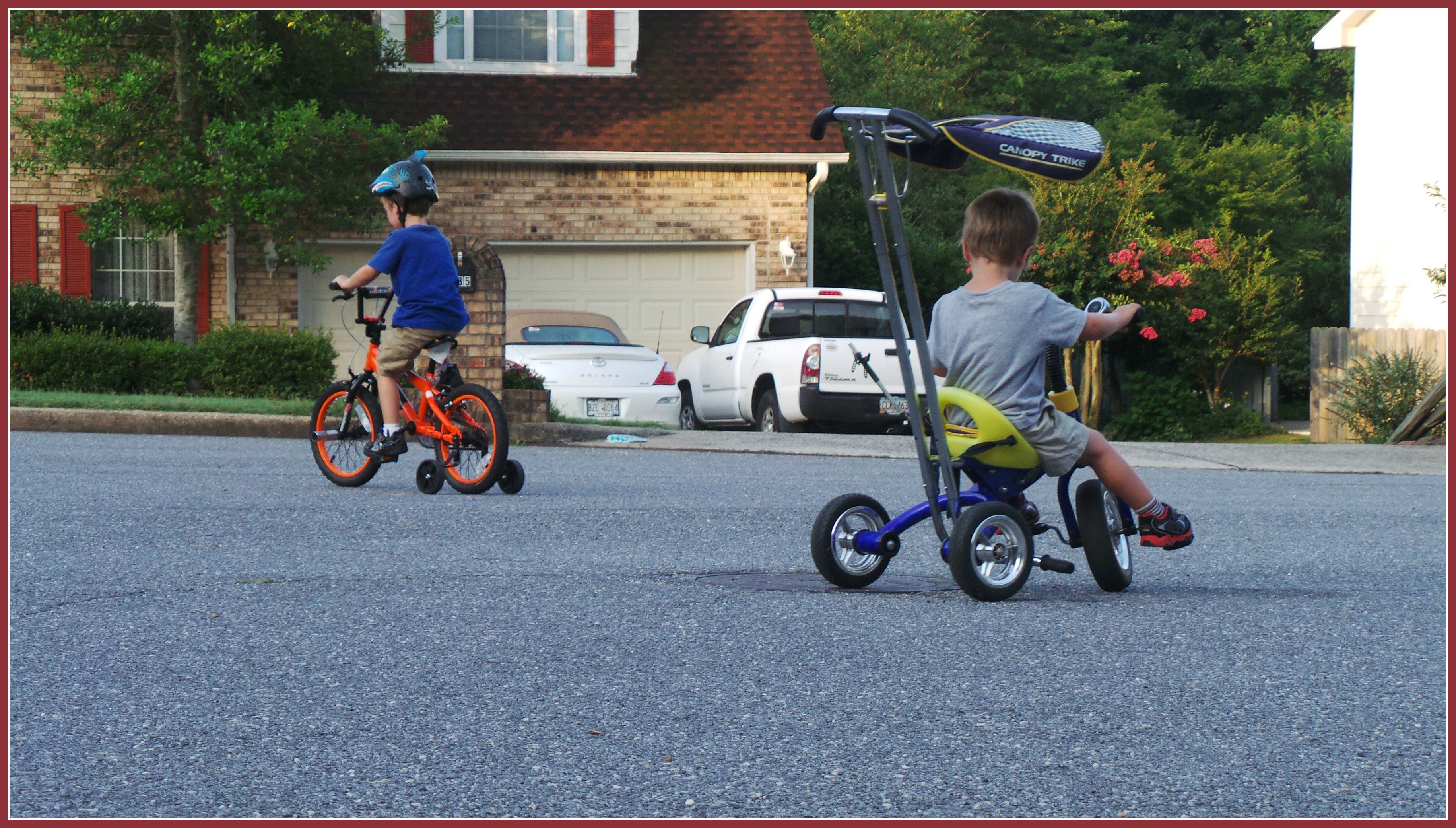 For every 10 times he went through the bike course that we had set up he got to go to the dollar store and get one thing. This scale of rewards lasted for about four weeks, then it got too easy for him and we had to increase it to 20. Fast forward a year, and he’s cruising around without the training wheels with ease. We now have his brother that we’re trying to teach the system. His goals are to be determined, but the fact that he sees his brother doing it will hopefully make the process much easier.