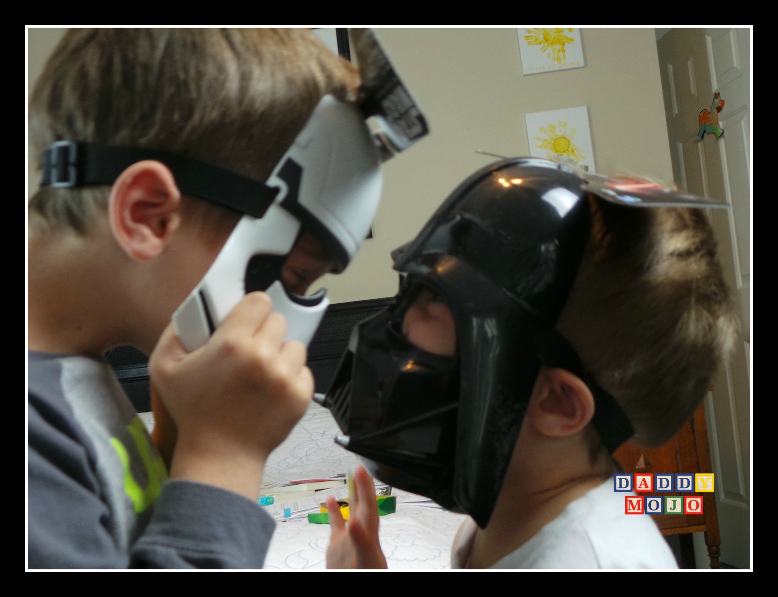 In the end though the kids loved playing with the Stormtrooper and Darth Vader masks the most. They’d take turns wearing them, pick up the Nerf gun and ran, ran around the yard. Our son’s favorite was Darth Vader and by the time the parents picked up the other kids they were out of breath and covered in sweat. They also asked if they could see Star Wars.