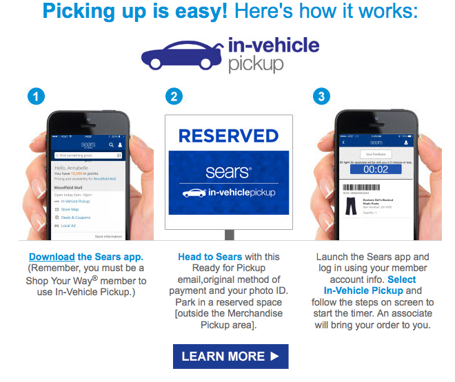 ENTER THE SEARS IN-VEHICLE PICKUP SWEEPSTAKES