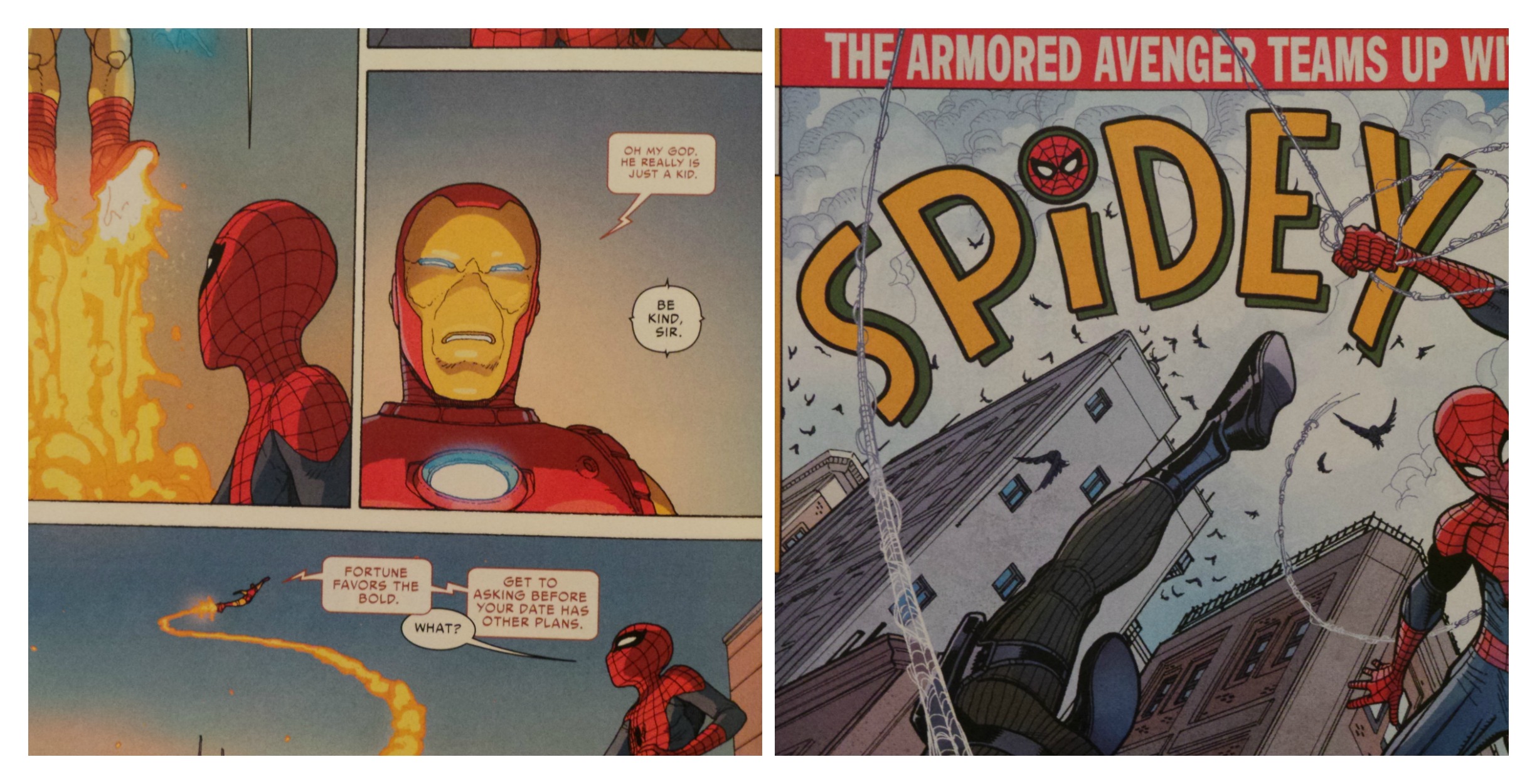 However, Spidey has to chase down The Vulture, which leads Iron Man to pursue them both. When The Vulture starts to fight Spidey as they fly through the city Iron Man suggests that they team up to take him down. Spidey has visions of him being an actual Avenger and the banter between the two heroes is quite funny and something that young readers will really enjoy.