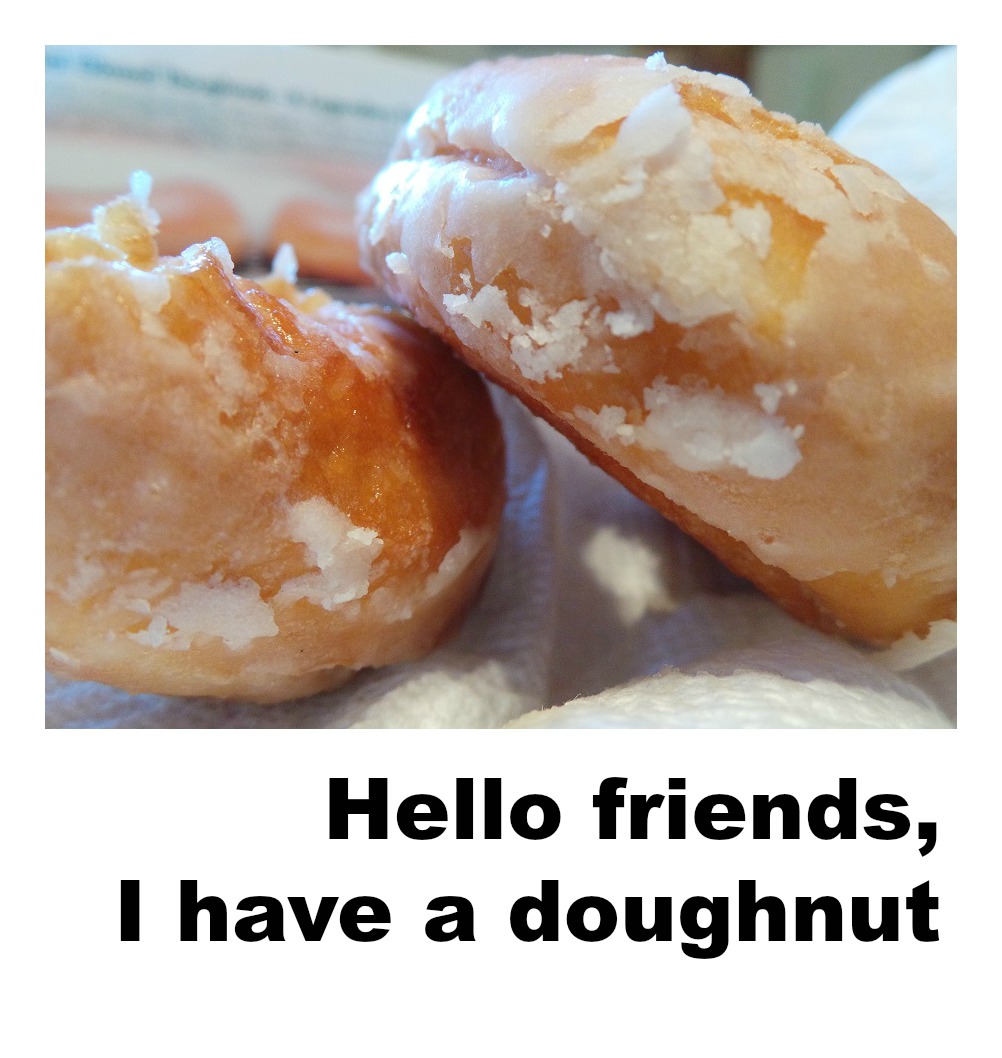 Just before we passed them he looked up from his doughnut and said, “Hello friends, I have a doughnut!”