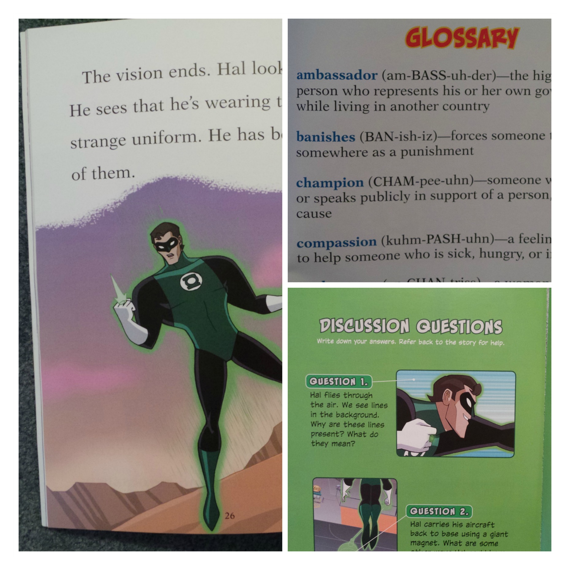 At the end of each book is a glossary of some of the new (see: bigger) words that young readers learned. There is also an overview about each super hero and two pages of discussion questions to help kids learn (see: research) more about someone they didn’t know anything about.