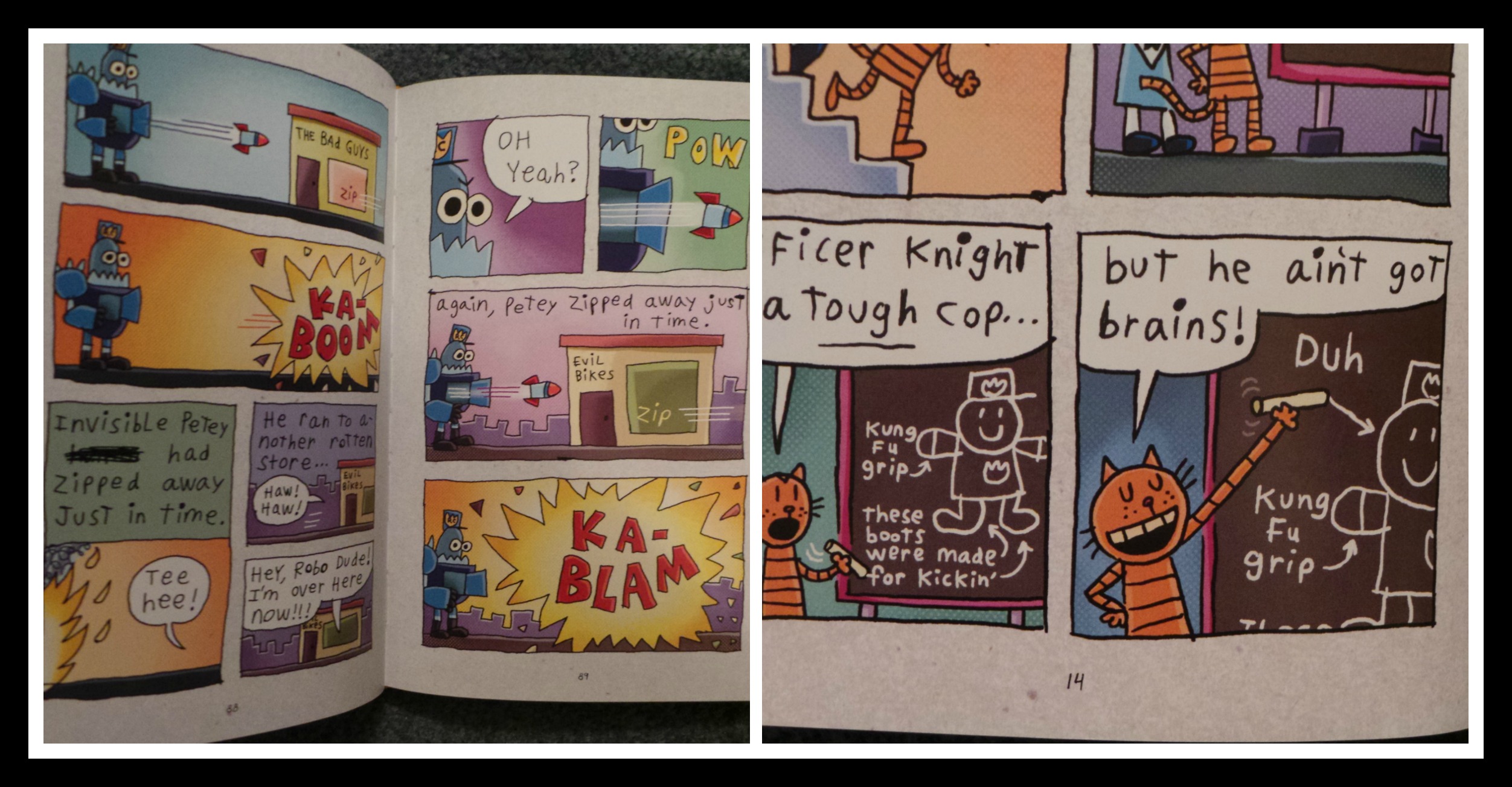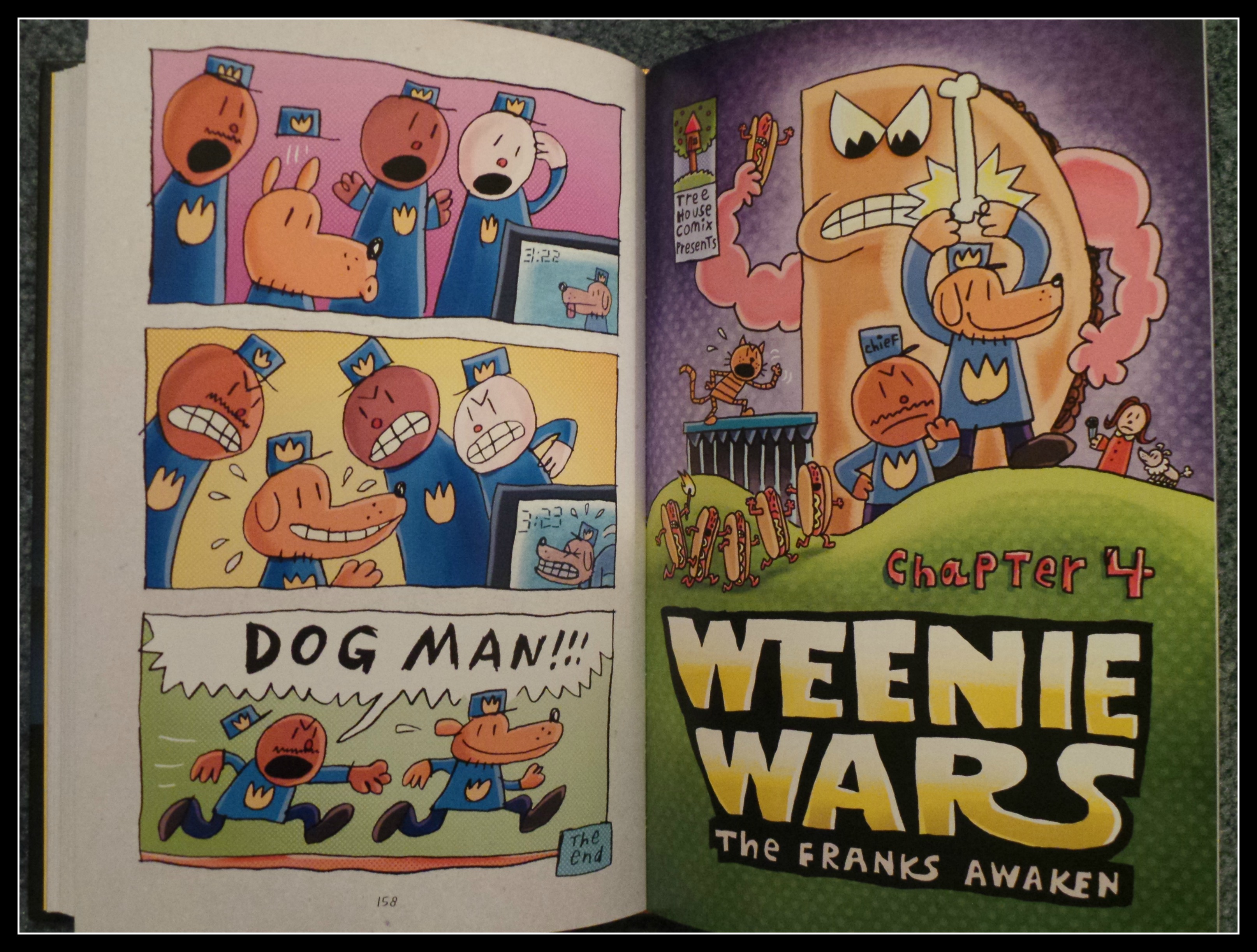 There are a couple of spelling and grammatical errors that fit the context of a comic book that’s supposedly written by a 4th grader. I understand why some parents would get upset or not let their kids read Dog Man because of this, but the enjoyment and love of reading that they’ll experience far outweigh these couple instances of non-perfect English.