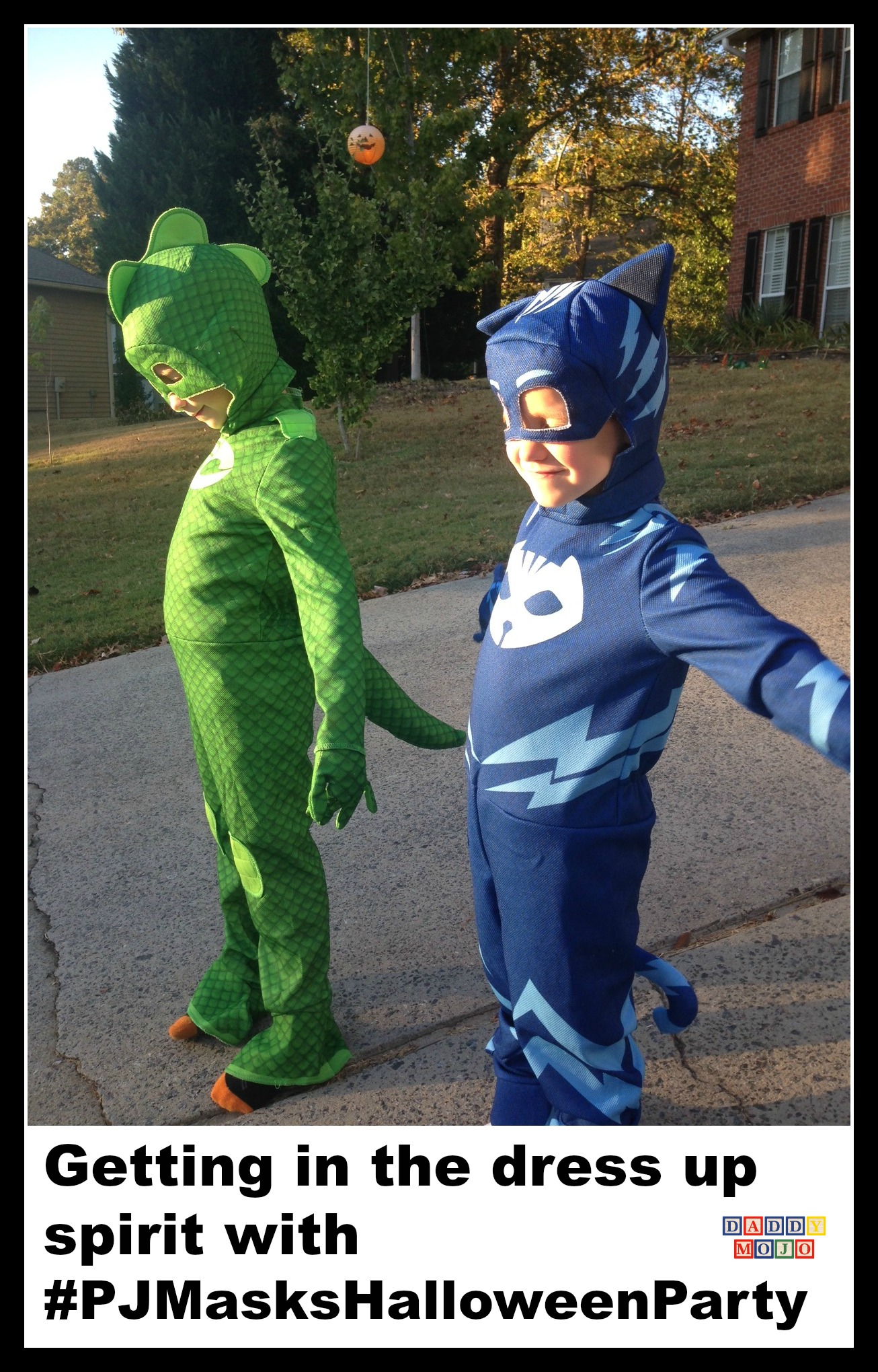 “Connor becomes: Catboy” or “Greg becomes: Gekko” is what our two will be saying. They’ll try their best announcer-guy voice, just like the cartoon. We had a practice costume run the other day and the boys were giddy over the fact that their costumes glow in the dark. To be clear, it’s accented parts of the costume that glow once they’ve absorbed some sunshine.