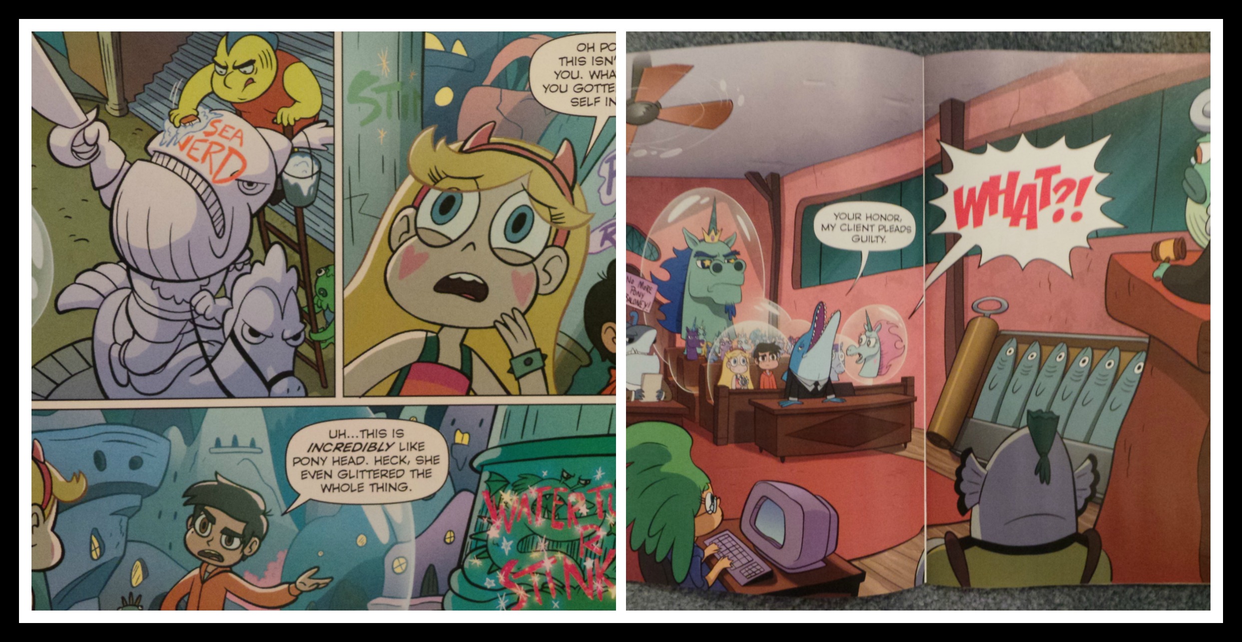 In the comic book versions, it’s impossible to not see the similarities between Star Vs. The Forces of Evil and Adventure Time. The major difference is that Star is slightly less manic and busy, targets girls more than boys and is aimed at a slightly younger audience. Slightly younger audience means that while Adventure Time is OK for 9 and up, Star Vs. The Forces of Evil is going to be OK for ages 7 and up.