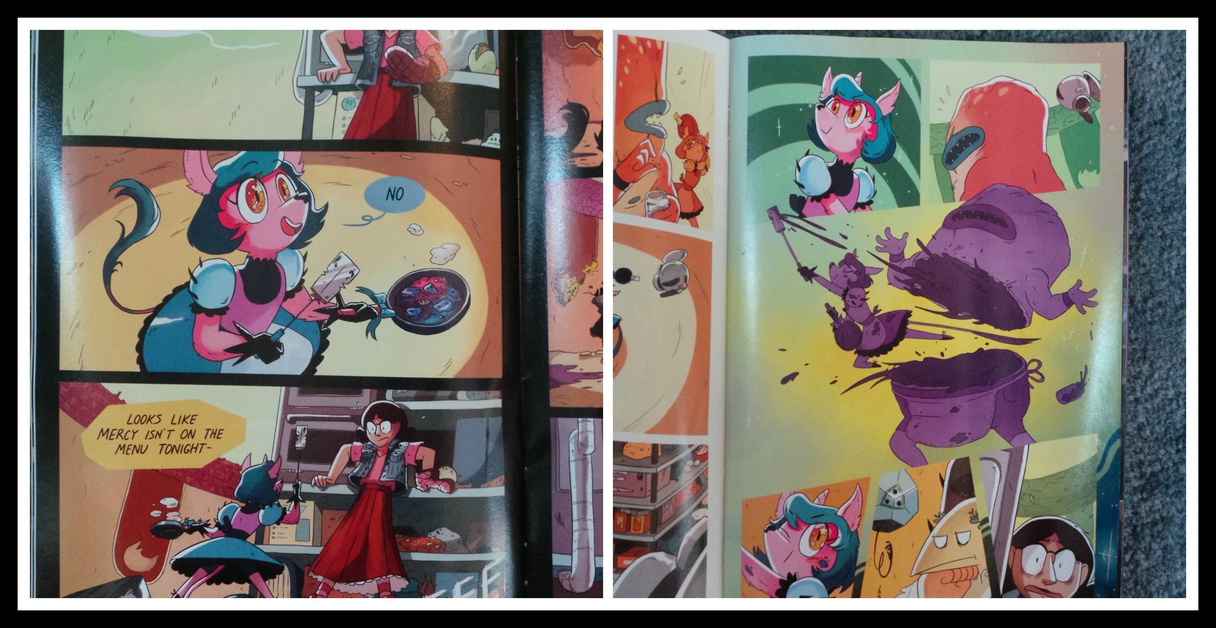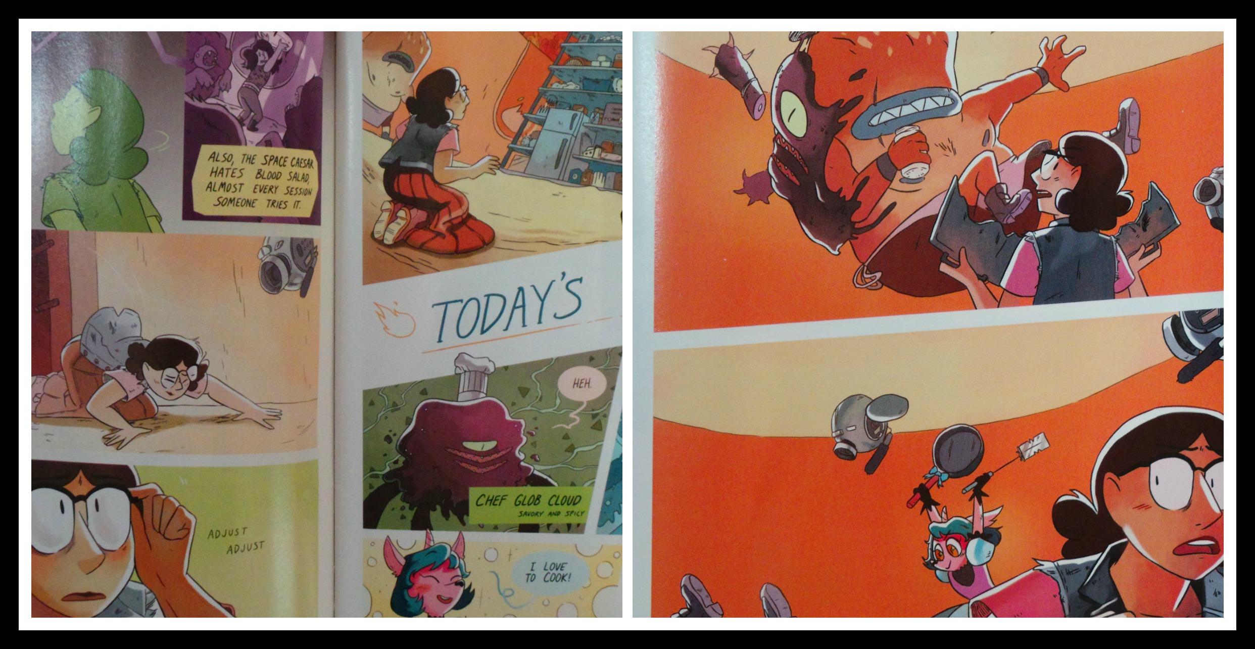 There is more to the plot for sure, but that’s spelled out in Space Battle Lunchtime, Volume One: Lights, Camera, Snacktion!, a graphic novel that collects the first four issues of this eight-issue mini-series is out now. So, I don’t know why Peony is competing in the contest or how she got there. Ignorance is bliss, I don’t know too much about this comic and loved every dreamy space art, food-driven panel in it.