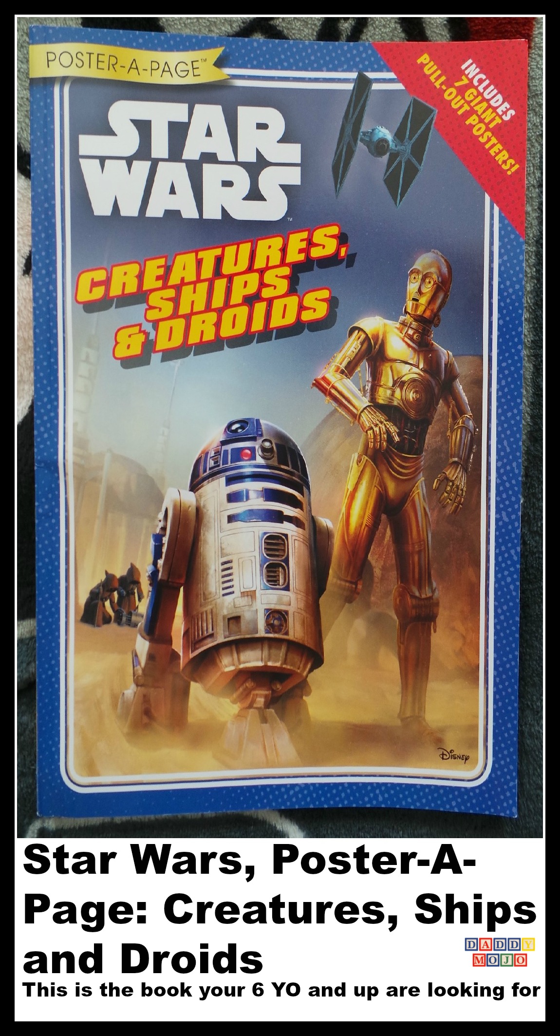 Our kids are in the Star Wars sweet spot. (Note: I may use that phrase for the next 20 years) No, really, they both are in love with the idea and the fantasy that these classic characters bring alive. Star Wars, Creatures, Ships & Droids, a poster-a-page book is as simple, direct and enjoyable as a book can be to a kid who is between 6 and 11.