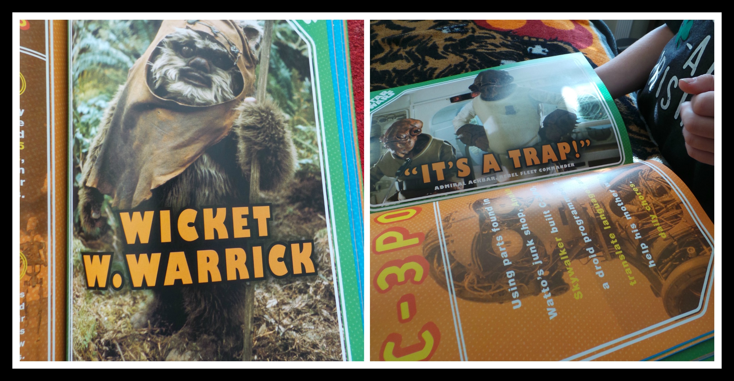 “Daddy, she would really like this book”, he said after the posters were up on his wall for a couple days. Star Wars, Creatures Ships & Droids has seven large posters that can be easily torn from the book and put up the wall. The remaining pages in the book are standard size and feature various creatures, ships or droids from any of the seven films.