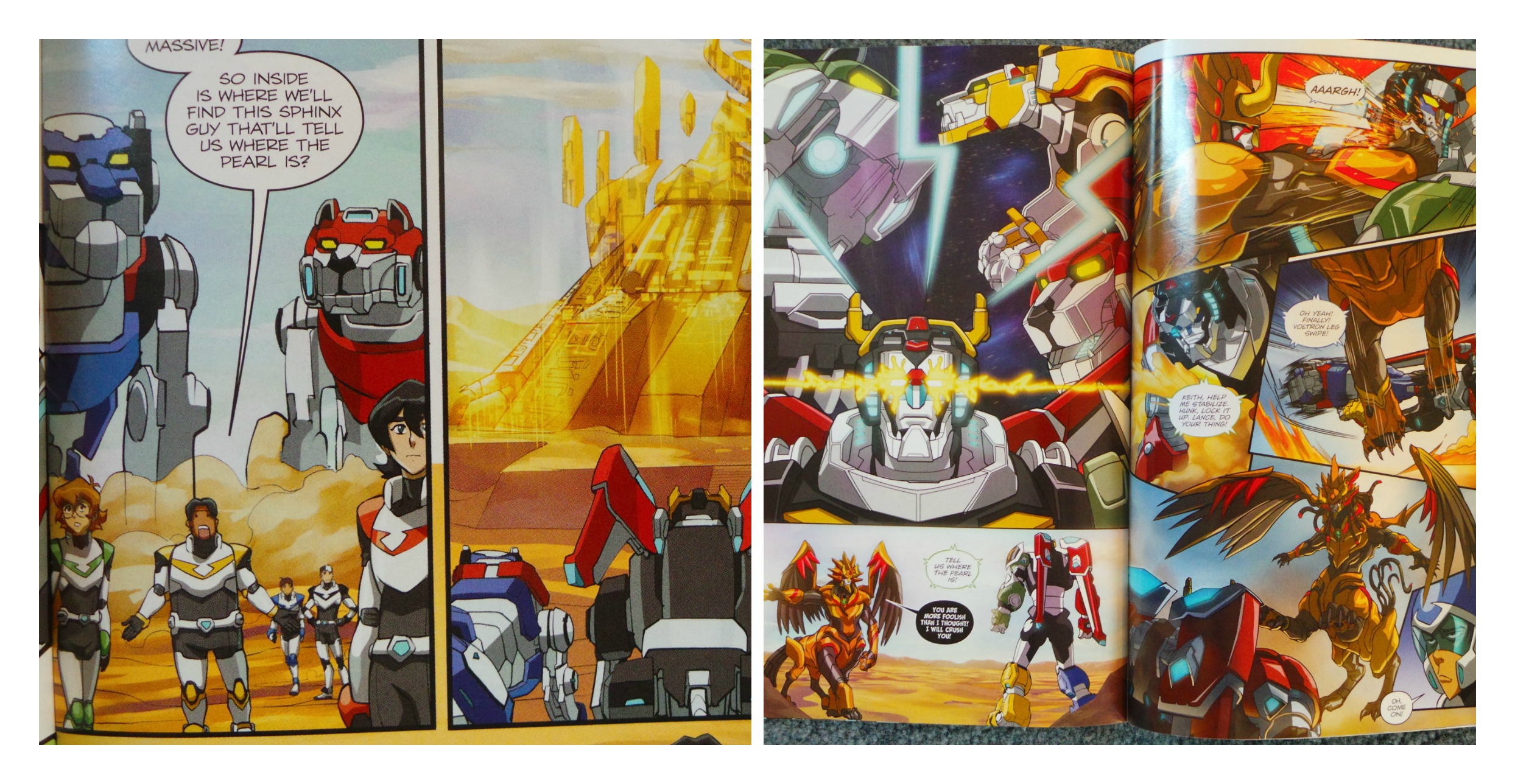 It’s also a very smart comic book and for that reason some kids will be attracted to it. The Voltron team members are on the hunt for the Valexian Pearl, but to find its location they have to convince the Great Universal Sphinx to assist them. The Great Universal Sphinx creates a series of tests for the team to go through that exercise their minds, as well as their bodies.