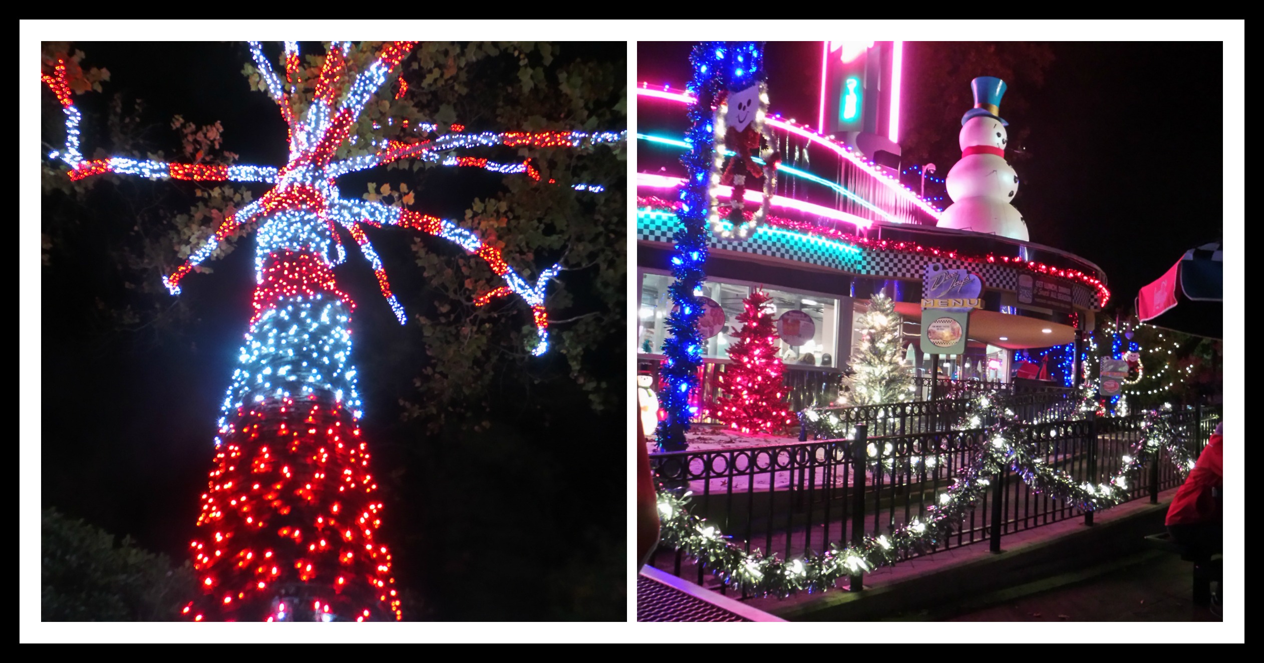 Afterwards we joined mom and his younger brother and simply walked around to look at the lights. The kids would wander off to look at something in the area and it was one of those rare moments where we were utterly relaxed. The kids were being kids, looking at one of the countless strands of lights, humming a Christmas carol and generally being silly.