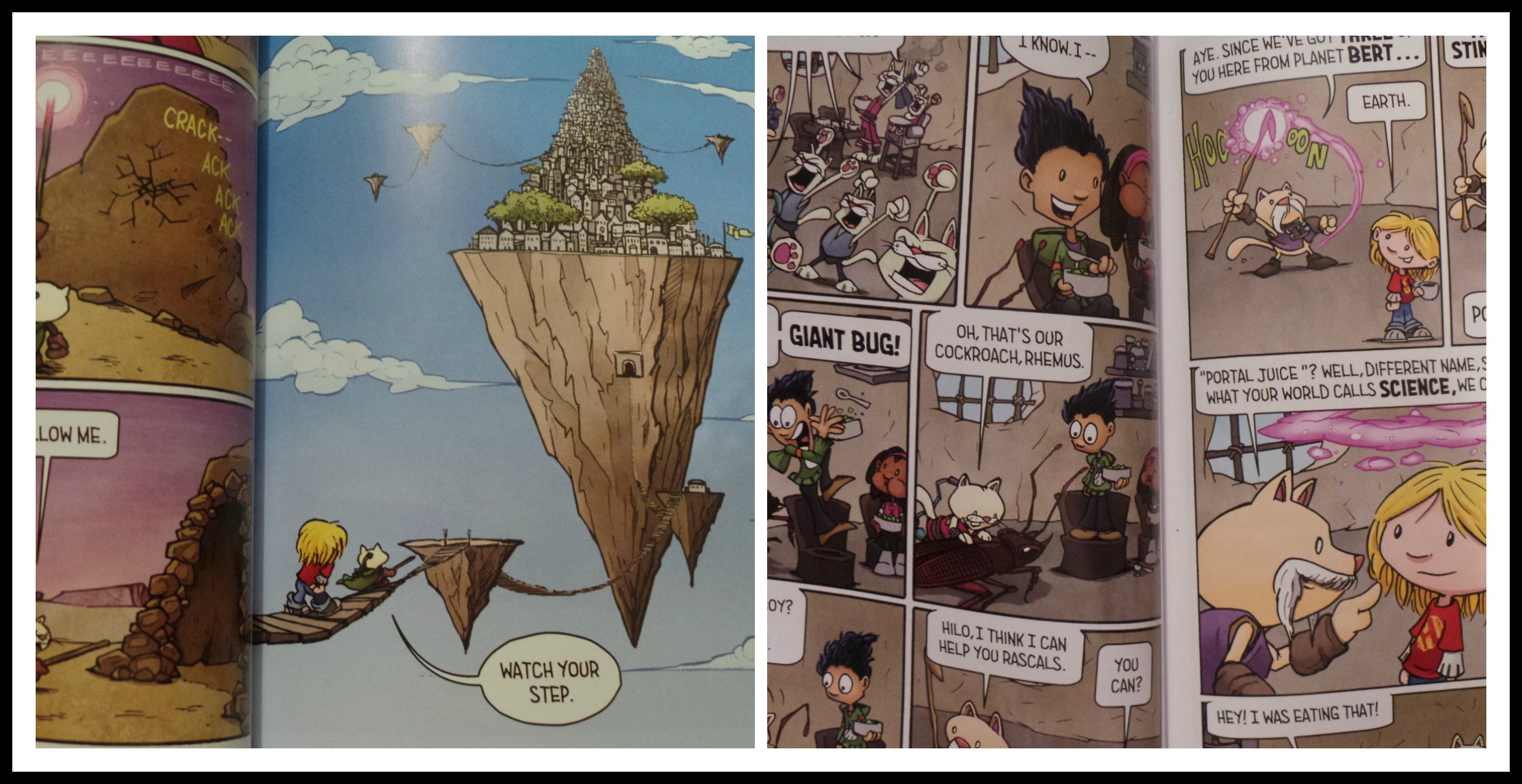 Hilo, The Great Big Boom is fun. It’s the kind of graphic novel that parents will borrow from their children when they go to sleep. Then the kids will come into your room early in the morning and give you the stink eye as if to say ‘hey, ask me before you borrow my book’.