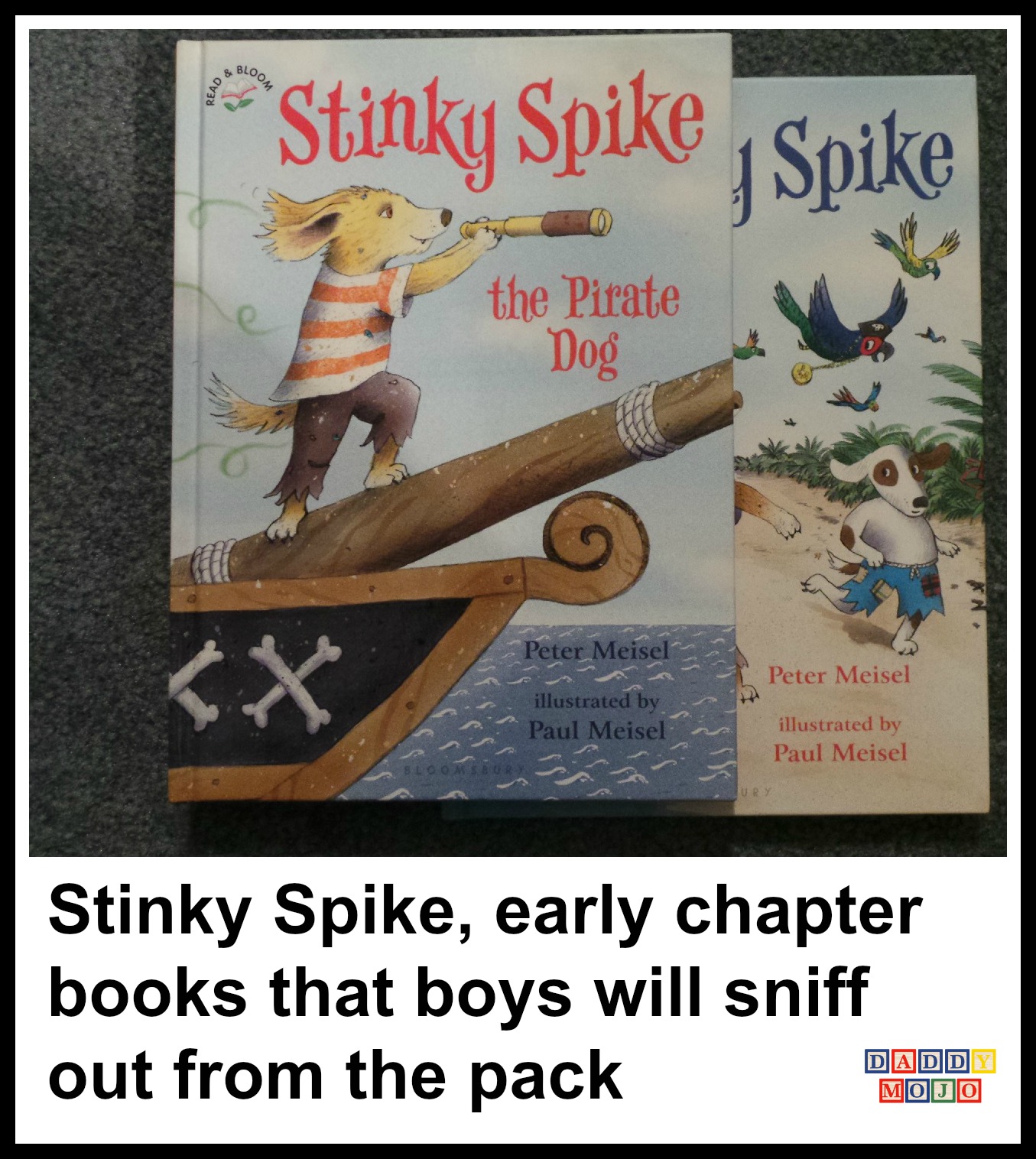 We recently reviewed Agnes and Clarabelle, the first books in the Read & Bloom book series from Bloomsbury. They’re early chapter books with basic vocabulary and big illustrations to bring in young readers so that they want to read the books by themselves. That particular series will be more attractive to young girls. Stinky Spike is the next series of books in the Read & Bloom lineup and will be of interest to boys more than girls.