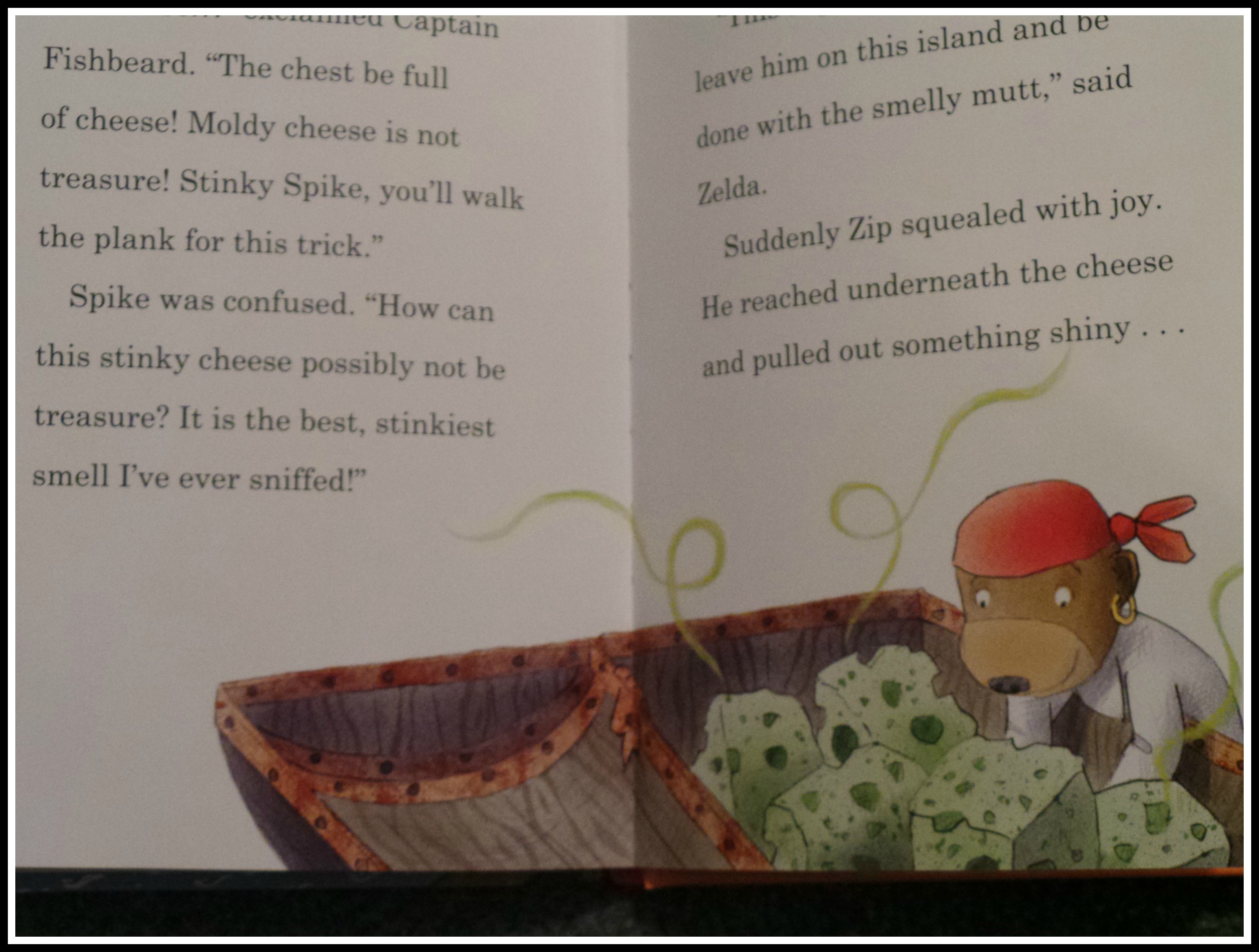The second book, Stinky Spike and the Royal Rescue was one that our oldest son went ahead and read without us. He briefly described the plot to me as a Princess Pirate joins their ranks and Stinky Spike found some really stinky cheese. But the point is that he really enjoyed the book, read it multiple times, told his friends about it and wants to read by himself now.