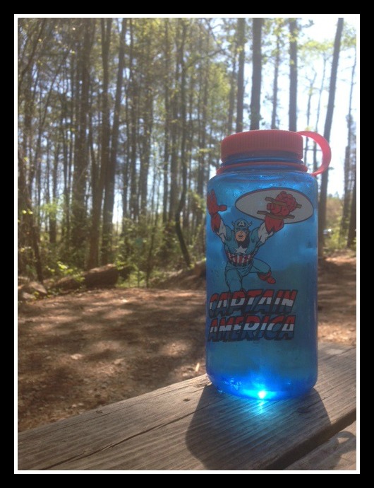 “Mommy, now I have a water bottle just like you” is what our 7 year old said. It made her feel all warm and fuzzy because it was an identifying and bonding moment that those two shared. For us it was more about super hero street cred. His Nalgene Captain America bottle from the Marvel Collection can accommodate 32 ounces of water for those hikes, bike trips or simply playing in the back yard.