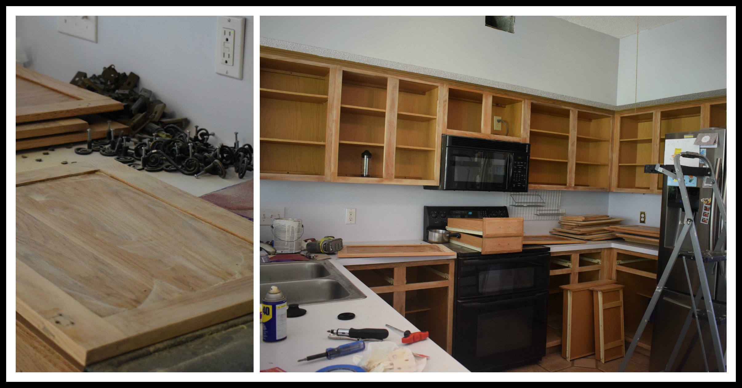Five days to complete. My head started to spin when I read that. Thankfully before I could second guess myself I started taking off the kitchen cabinet doors, removing hardware and transferring all of the dishes and food.