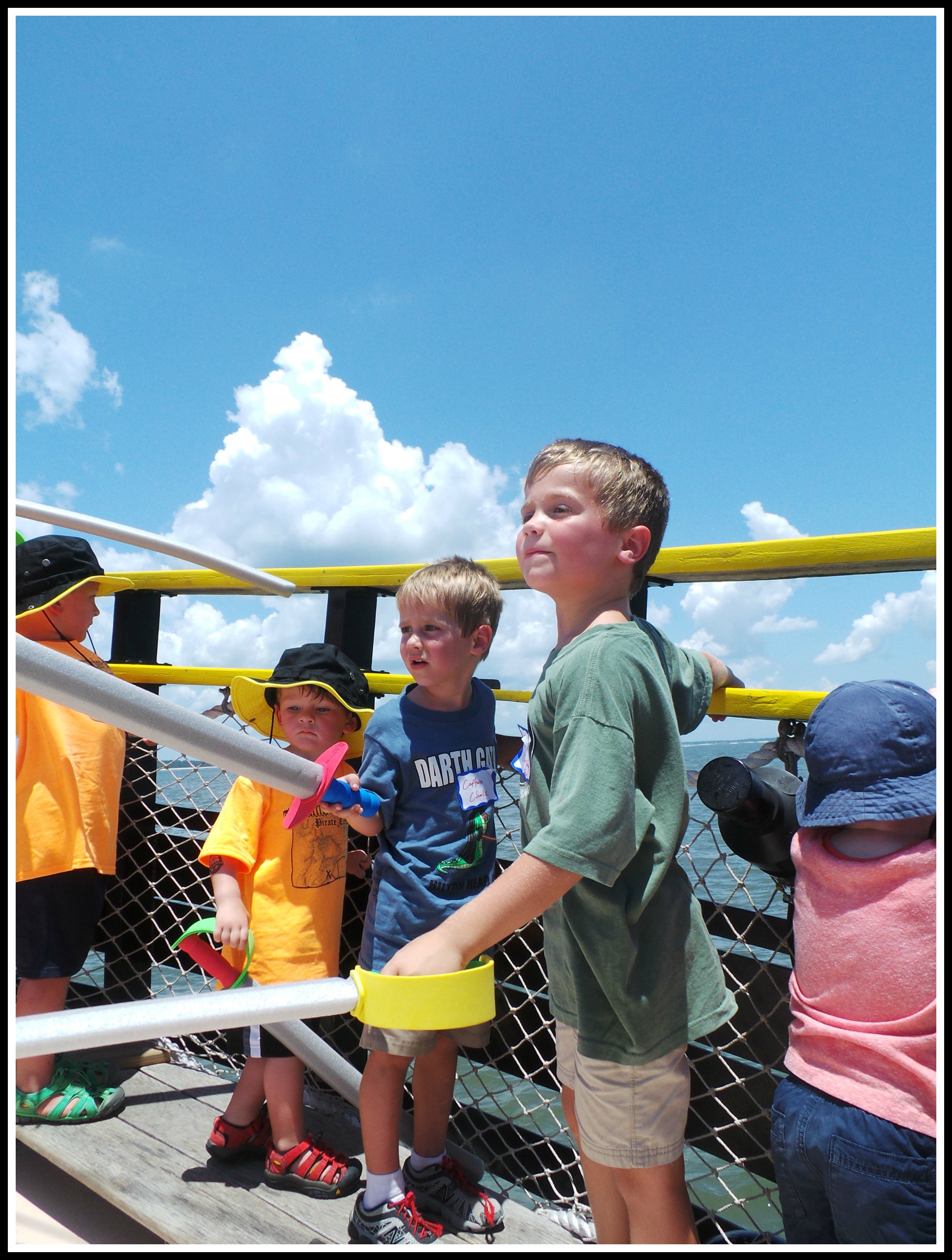 To give you an idea of how much our 4 year old enjoyed his time on the Pirates of Hilton Head he kept his treasure from the ship’s journey, a bag of plastic ‘pirate money’, until we got home. At home, while eating at our local bagel place, he took it upon himself to pass out a coin to some of the folks eating there. “It’s pirate money”, he told them. Most of the folks gave the money back to me once he moved on to the next table. Almost a year later he found one of his pirate money coins in the garden. “Oh look, it’s one of my pirate monies”, he said. I didn’t bother to correct his grammar. I was just in awe of the fact that he remembered the trip and how his small toys can literally get everywhere.