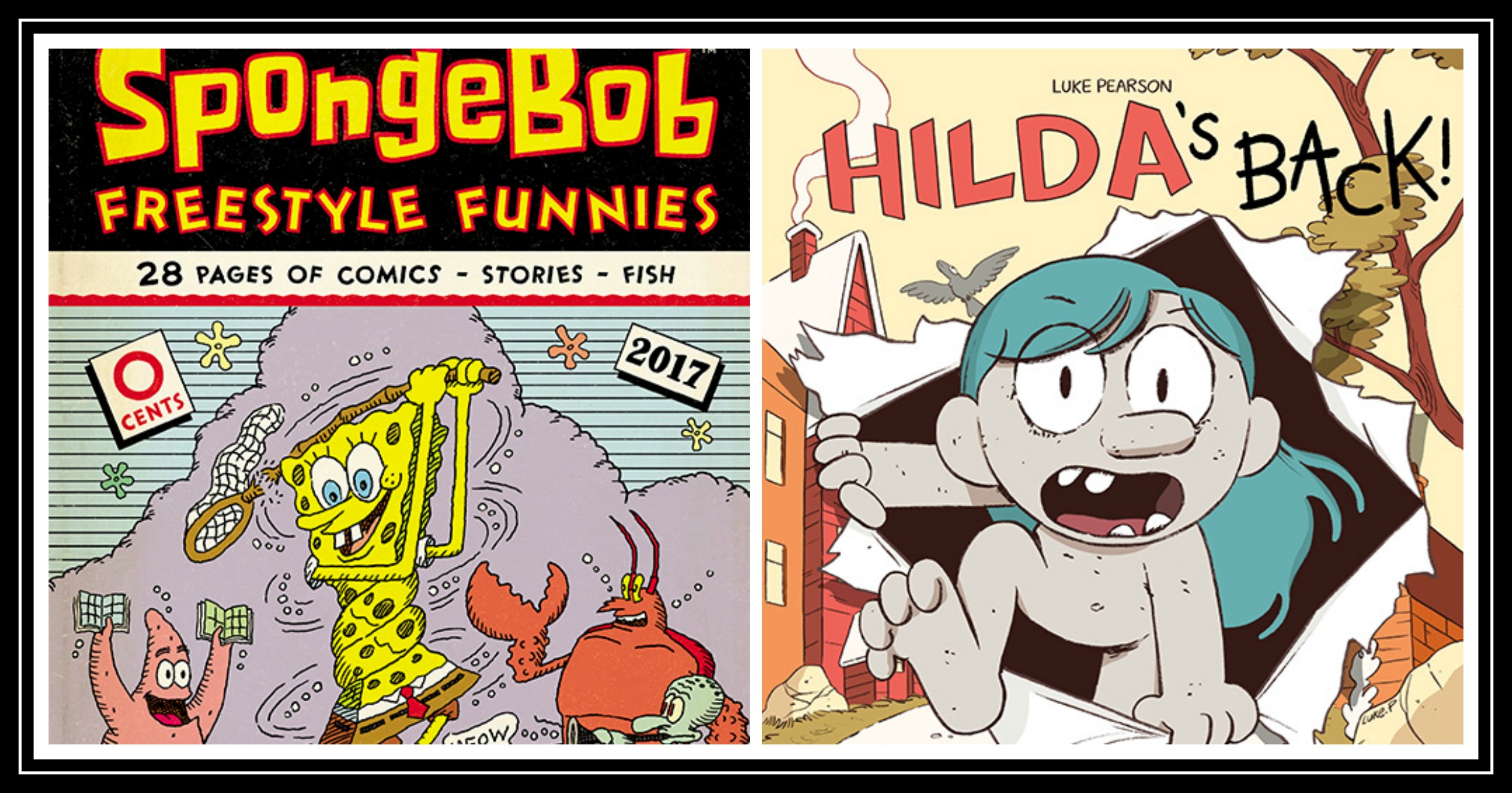 Drawn & Quarterly is another issue that we pick up each year. For starters it’s huge, this one has 68 pages. Because of that it introduces readers to so many characters that they might otherwise not have the chance to love like Kitaro, Moomin, Anna & Frog and more. Colorful Monsters has lots of funny art and is utterly different, a breath of fresh air if your young reader is looking for something cools, unique and fun to read.