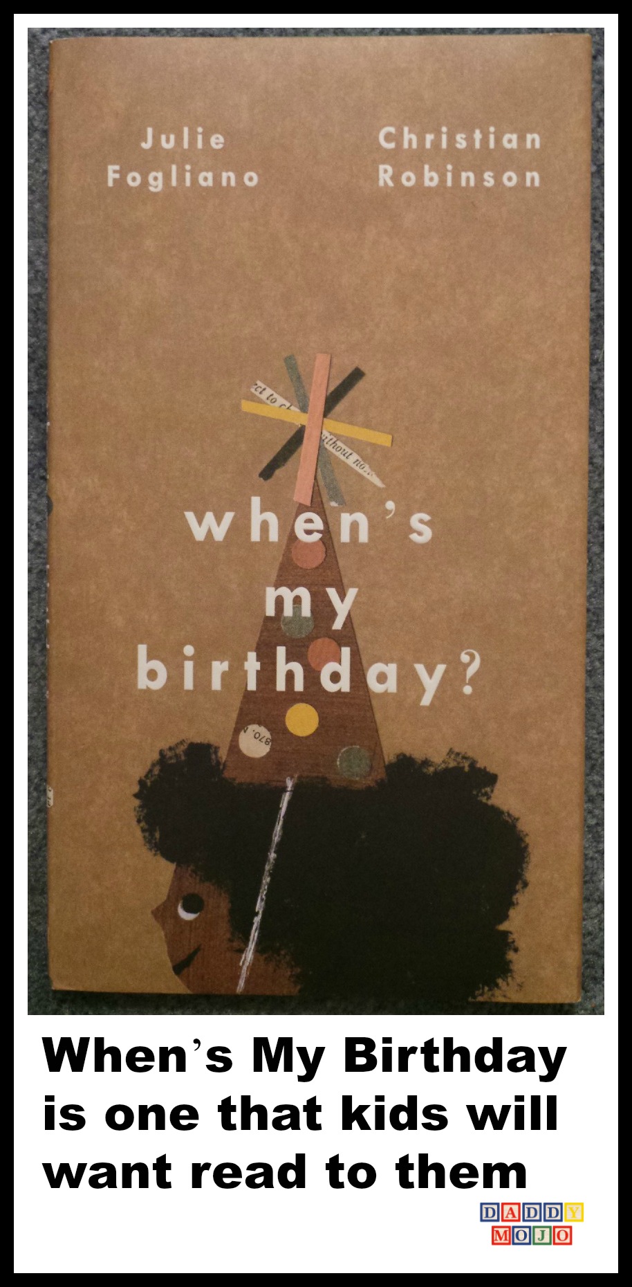How many sleeps till my birthday? We start to get those questions about three months before the youngest one’s actual day. It’s a cute and precious thing when a child establishes a timeline based on sleeps. When’s My Birthday? is a children’s book that is intended to be read to them-and read to them with you inner theater major leading the charge. The more enthusiasm the better. It’s written for kids. That may sound obvious given that it’s a children’s book. However from its mixed medium art to the fact that there are no capitol letters, it’s apparent that the book is entirely meant to be read to children. This is the kind of book that young children will want read to them over and over, but especially near their birthday.