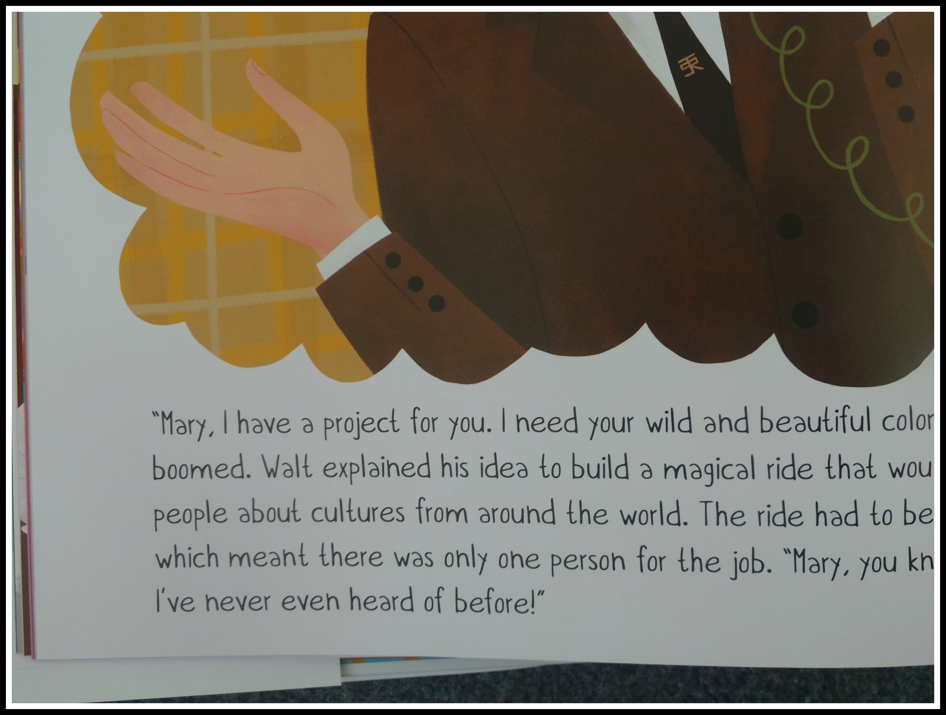 It’s the story of Mary Blair. Her family was moving to California and her world was becoming a bright spot, filled with hues and tones that the world wasn’t ready to accept. She meets her husband, Lee, but as it was the Great Depression, things just weren’t happening. Blair was lucky to get a job at a new upstart company, Walt Disney Studios, where she was one of the first women Walt hired.