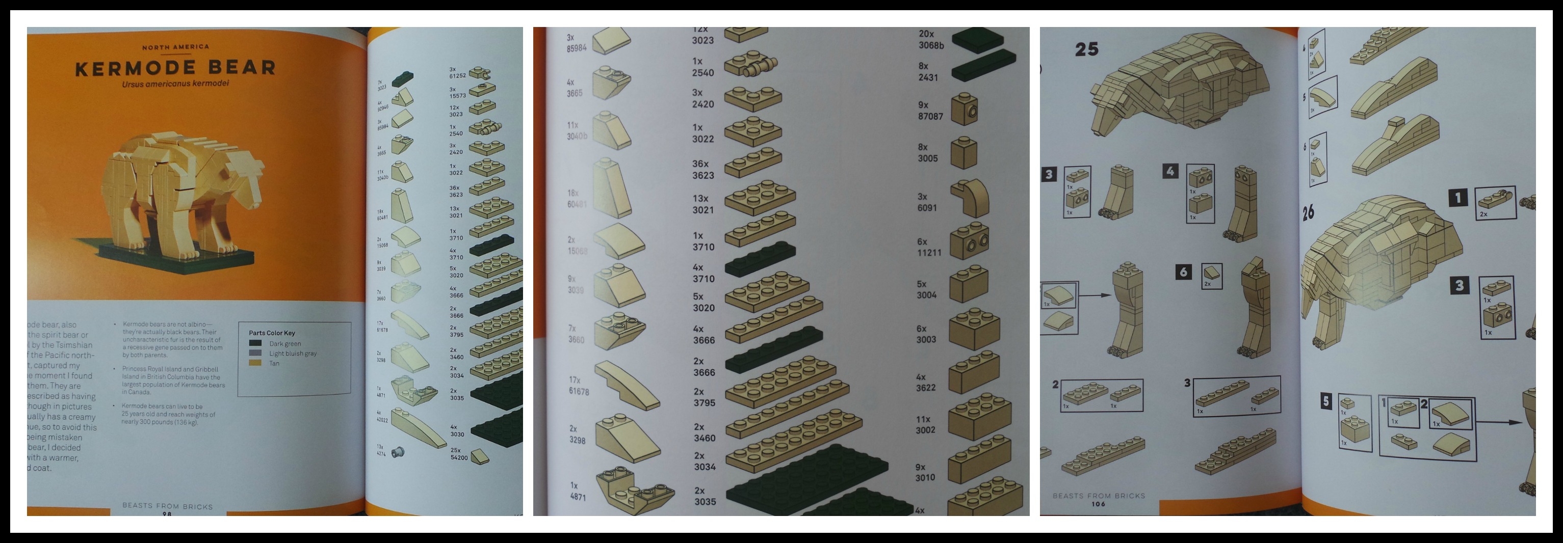 The animals in Beasts From Bricks are arranged according to continent and they’re all represented. Europe checks in with the Suffolk Sheep and European Bison. Every creation has a parts list and illustration of the LEGO brick that’s required to build each beast. Again, it’s quite probable that the majority of casual LEGO builders have the pieces, but they’d need to break down all of their Land Speeders, Bat-Planes and any specialty sets to make these. The larger assorted sets will also have all of the pieces, but won’t have them in the monochromatic color scheme as you’ll see in the book.