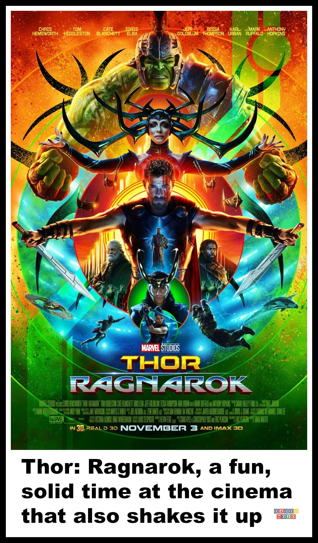 I saw the first Thor and forgot most of it. The second film I didn’t see. I haven’t seen Age of Ultron and was disappointed by Avengers: Civil War. You don’t need to be a fan boy or fan girl to love this film.
