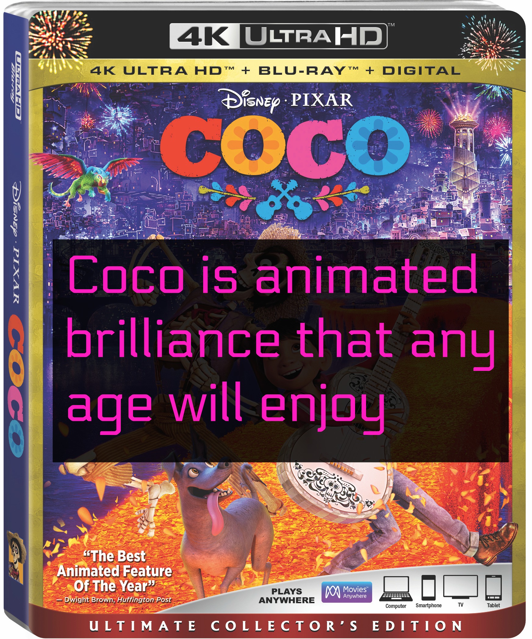 Coco is one of the rare animated films that my family saw before I did. When they got back from the sneak preview everyone was raving about Coco and how it was the best film they’d seen in a long time. That was high praise coming from my family, but at the time I was only concerned about me, being stuck in bed due to the flu. Now that Coco is on Blu-ray DVD I finally got up to speed on what my family was talking about and I agree with them on all fronts.