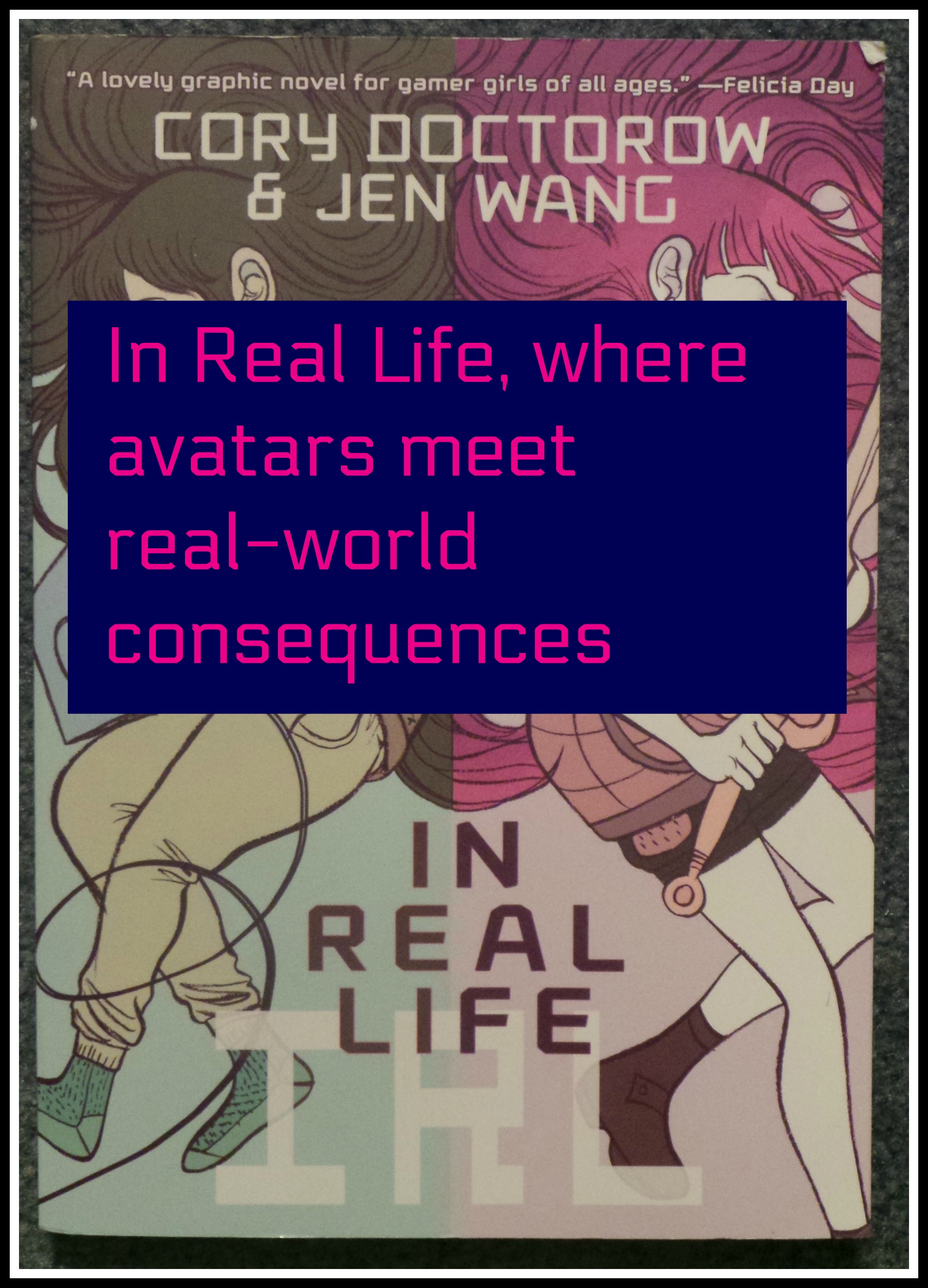 Having said all of that, In Real Life is a treat to read, and much like most of today’s video games I’m not the target audience. This graphic novel is custom made for gamer girls aged 11 and up. The content is appropriate for ages 9 and up, but they might not be able to relate to the range of emotions, experiences or what older kids are allowed to do by their parents.