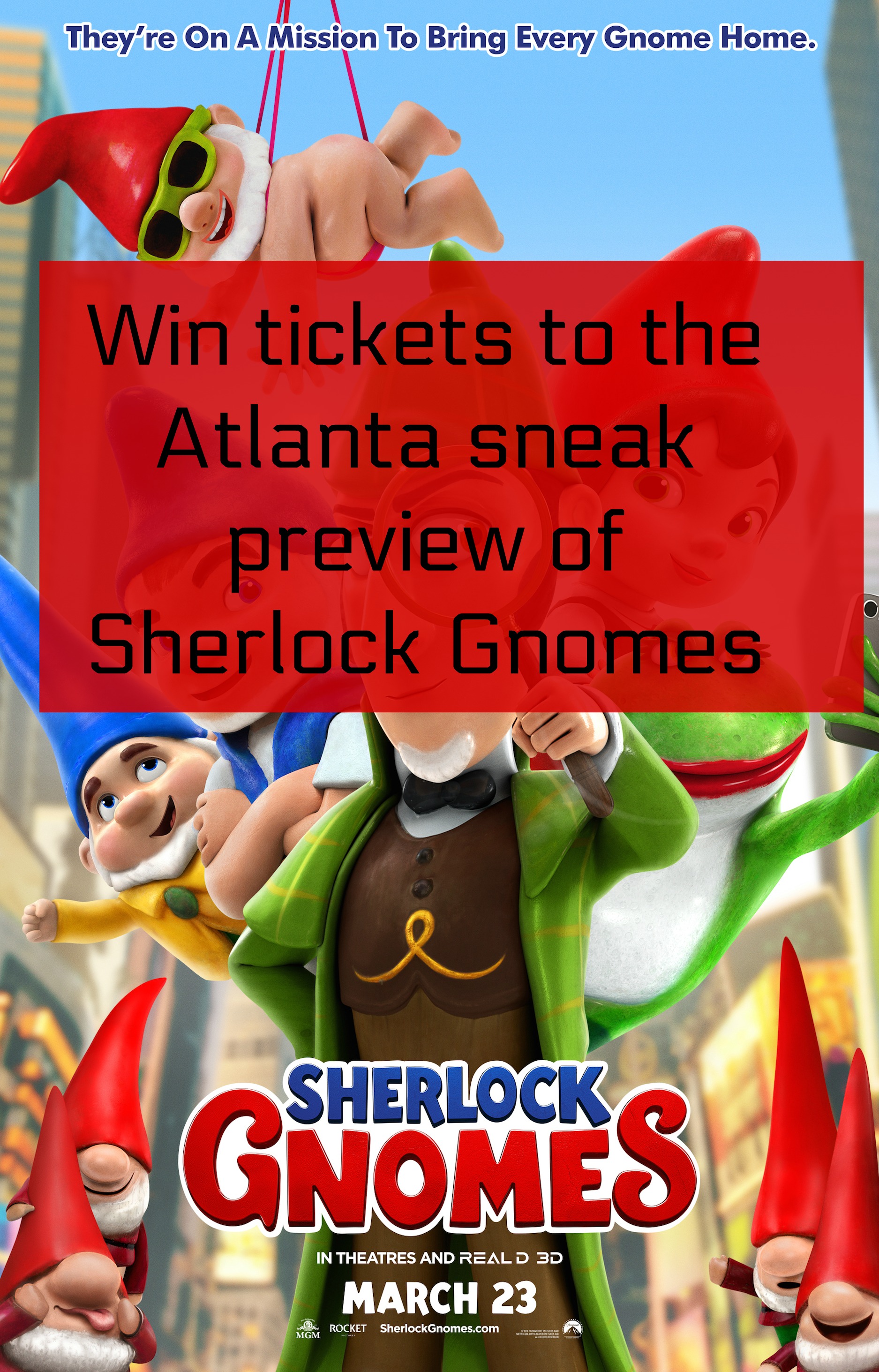 Insert tongue fully in cheek and listen to the kids tell you that they want to see Sherlock Gnomes. Sherlock Gnomes is rated PG and will hit movie theaters on March 23. We’re giving away pairs of tickets to the Atlanta sneak preview of Sherlock Gnomes. It’s Thursday, March 22 at Atlantic Station and winners will have the tickets emailed to them. The giveaway ends Tuesday, March 20 at 8PM and to enter just leave a comment in the post or on YouTube.