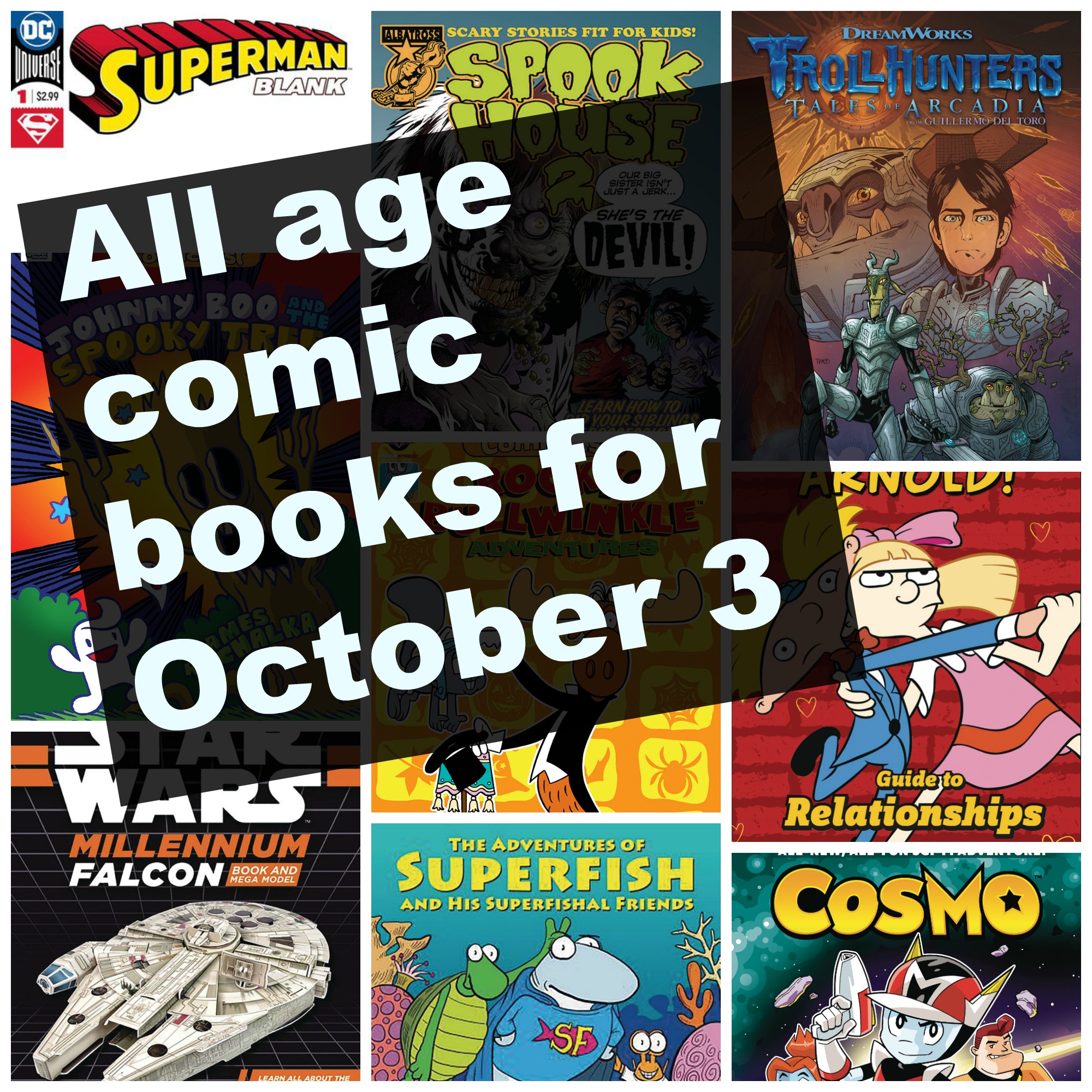 Halloween is upon us this week for the new all age comic books! To an extent that is true at the Halloween Comicfest Mini-Comics hit stores this week. If you want to buy any of these you need to buy them quickly! They will sell out and the better, more action oriented all age comic books will be the first to go. They’re only $4.99 for a pack of 25, thus they’re great for Halloween or any large, kid group gathering. Over in the podcast we’ll talk about Sherman’s Lagoon, Batman Blank, Trollhunters and more. For now let’s look at three all age comic books that’ll be the jam for lots of young readers.