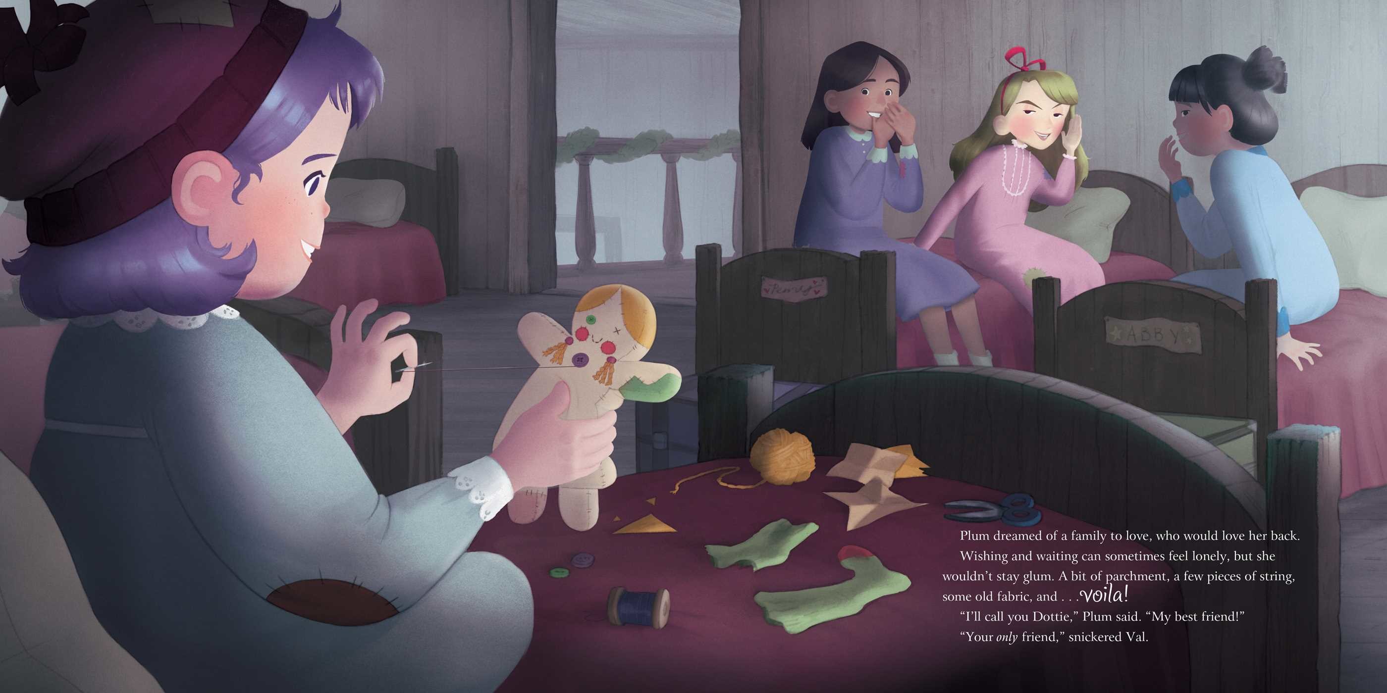 Plum is a book by Sean Hayes and Scott Icenogle, with illustrations by Robin Thompson that aims to provide her a front seat at the Christmas hall of fame. Plum is a smaller than average girl at the Mary Fitzgerald Orphanage. She often gets picked on, is quite artistic, loves dogs and doesn’t get along too well with the other girls.