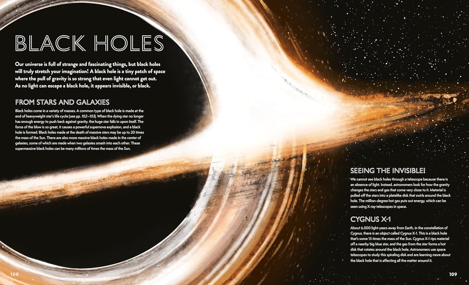 The text is in paragraph blurbs that are placed around the realistic illustrations that drive home the point. I think they’re illustrations. The book’s cover says that the illustrations are by Suzie Mason, but some of them are so realistic you’ll think that she’s an alien who simply took these photographs as she was coming back to Earth after visiting her family in TON 618. TON 618 is a galaxy that’s believed to contain a supermassive black hole that is 70 billion times the mass of our sun.