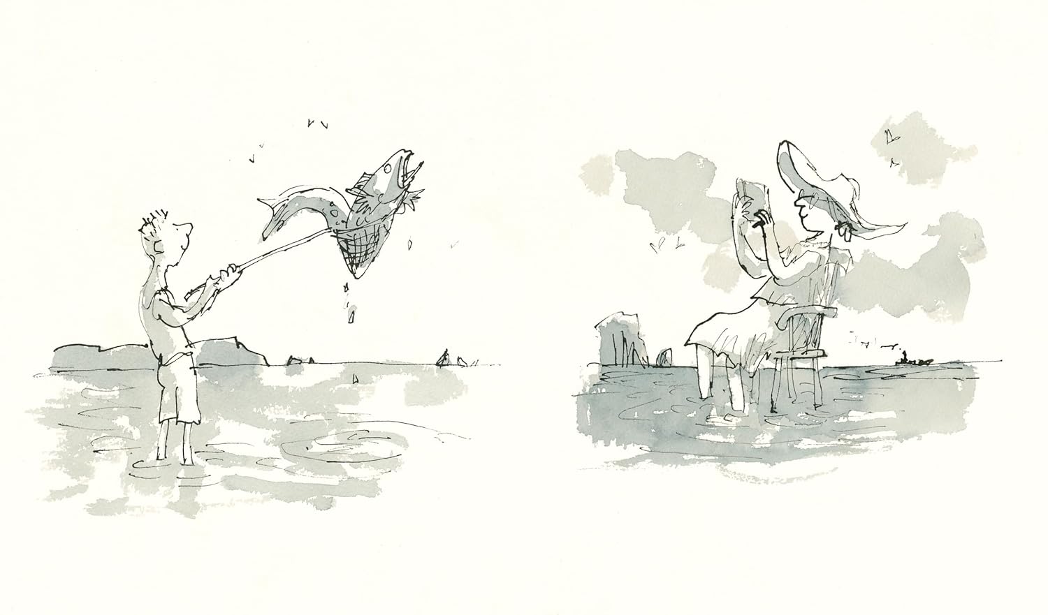 Kids, as well as, adult readers who open Fantastic Journeys will thumb through the book page after page. The potato chip and cat video test is strong with this one. Quentin Blake’s Fantastic Journeys Fanciful Drawings & Surprising Situations will end up on your forever bookshelf. Guests to your home library will ask about it. They’ll say that it looks like the cover to a Roald Dahl book they’ve since forgotten. If they’re a younger reader then they’ll curl up in a corner and learn to love to look at a book.