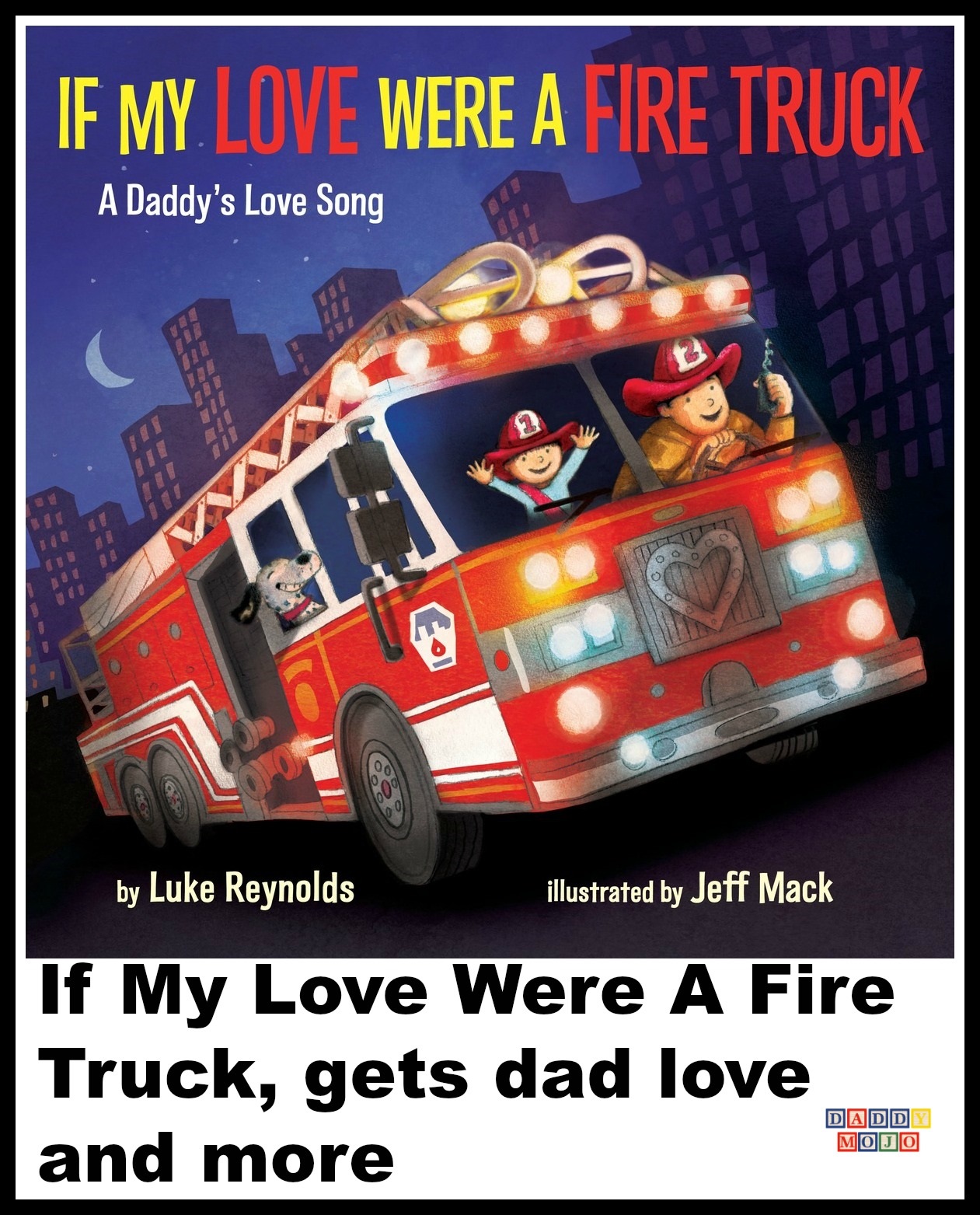 In the kid lit book world it’s a thin line between sappy dad love and over the top machismo. Usually it’s the stereotype of a well intentioned dad trying to fix something that goes astray. It’s a close relative to the dumb dad that advertisers used to rely on far too much. If My Love Were A Fire Truck by Luke Reynolds with illustrations by Jeff Mack is children’s book that straddles that line with ease. It shows the father figure in the book doing all manner of activities with his son, albeit in his imagination.