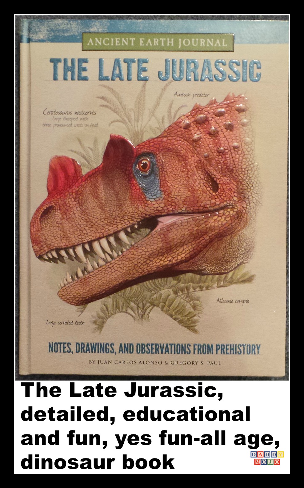 Both of our children loved dinosaurs. This is great for us because we like dinosaurs too. We’ve saved all of the dinosaur toys and models that they have (Dinovember!!!) and are still thankful that one of our kids is in this zone. The problem for parents and therefore young children has always been a lack of all age accessible dinosaur books. They’re too cartoonish or detailed for the short attention span that young children have. Early Earth Journal, The Late Jurassic by Juan Carlos Alonso and Gregory S. Paul fills this void of dinosaur books perfectly.